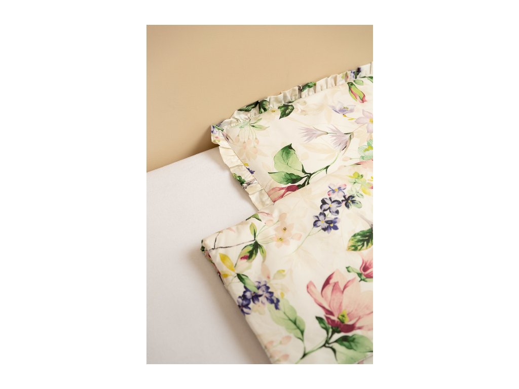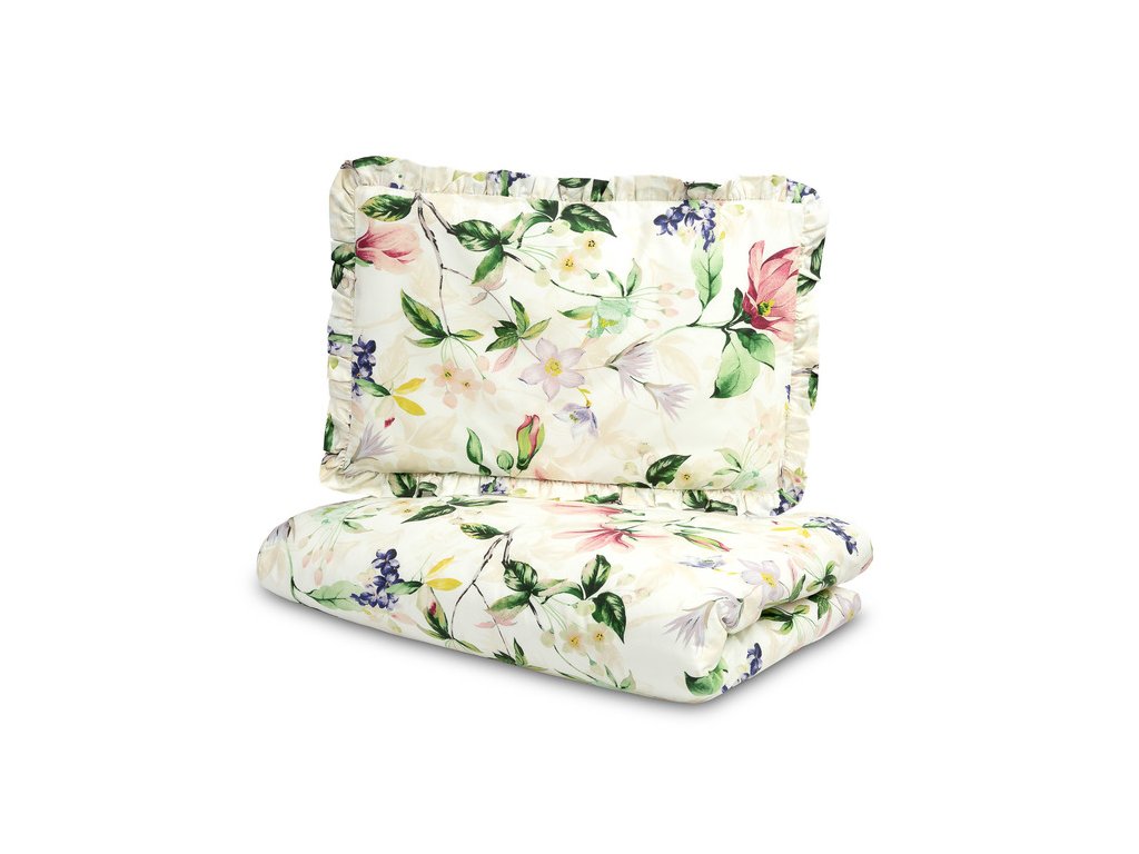 Pościel 2-elementowa z falbanką została uszyta z miłej w dotyku i trwałej bawełny. Połączenia kolorystyczne będą idealnie pasowały do każdego dziecięcego pokoiku. Komplet zawiera poszewkę na kołderkę o wym. 100x135cm i poszewkę na poduszkę 40x60cm. Poszewka na kołdrę zapinana jest na zamek, natomiast poduszka na zakładkę.