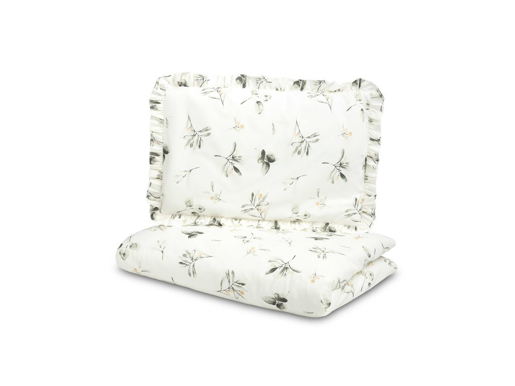 2-dílné lůžkoviny s volánky byly vyrobeny z příjemné na dotek a odolné bavlny. Barevné kombinace budou dokonale ladit s každým dětským pokojem. Sada obsahuje přikrývku s dim. 100x135cm a povlak na polštář 40x60cm. Přikrývka je na zip, zatímco polštář je označen záložkou.