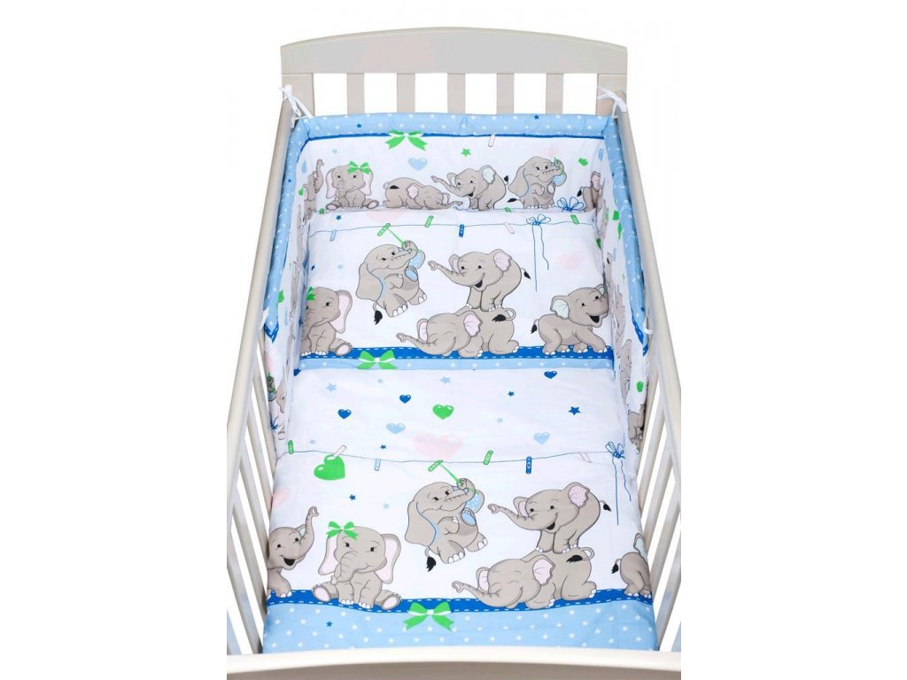 3-dílné ložní povlečení New Baby 100/135 cm se sloníky - růžová - 90/120 cm se sloníky - modrá