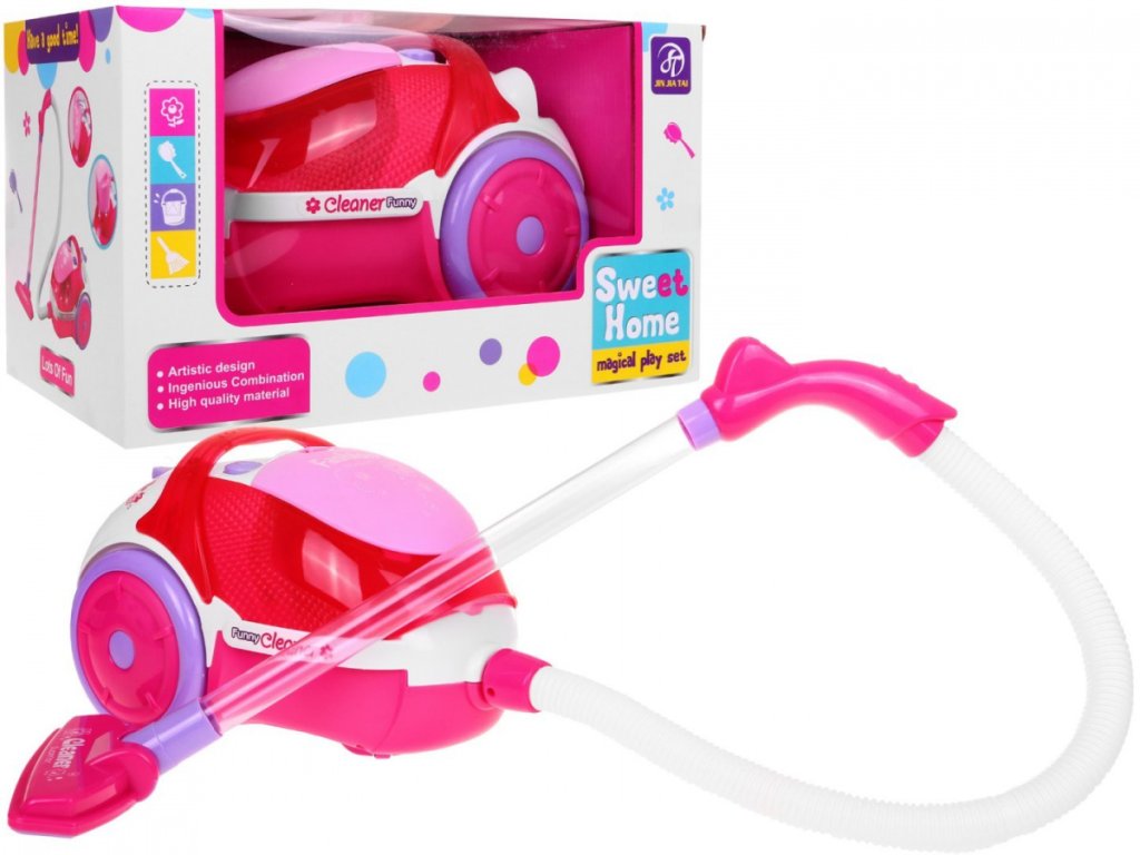 The vacuum cleaner is equipped with an on / off switch and a lamp indicating power, a flexible tube, a suction cup and a handy handle, for which the toddler can safely move the vacuum cleaner. The battery-powered toy really dusts! Fun in order will become a real pleasure, and real cleaning will not be a chore when the child will learn from playing with it during play. The toy will certainly meet the expectations of every toddler, and by the way we will teach our kids to care for cleanliness. The set is packed in an aesthetic and colorful box, perfect for a gift. The toy is powered by four 1.5V AA batteries (not included). | |