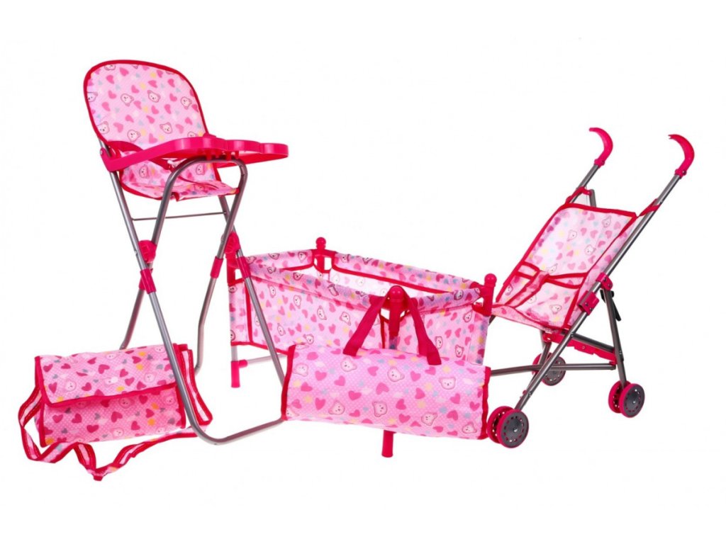 - a cot for a doll, - trolley, - high chair, - 2 x purse | |