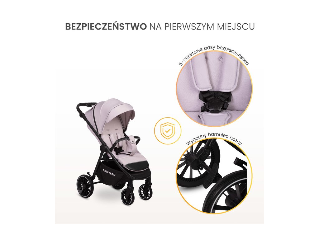 - Prostorné sedátko s nastavitelnou opěrkou zad (včetně polohy v leže)