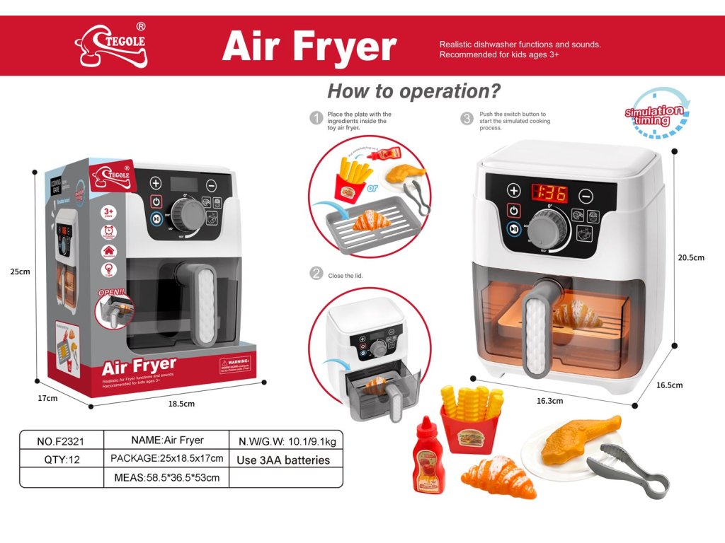 Air Fryer with Lights and Sounds + Accessories