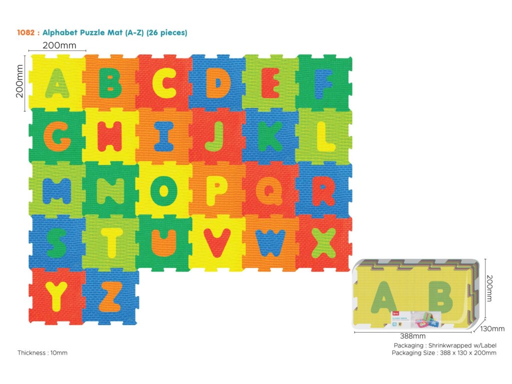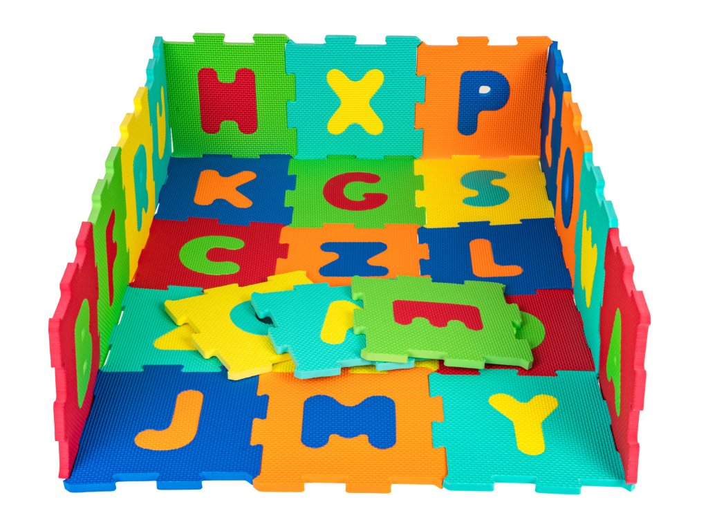 - 26 soft foam puzzles with removable letters of the alphabet from A to Z, |