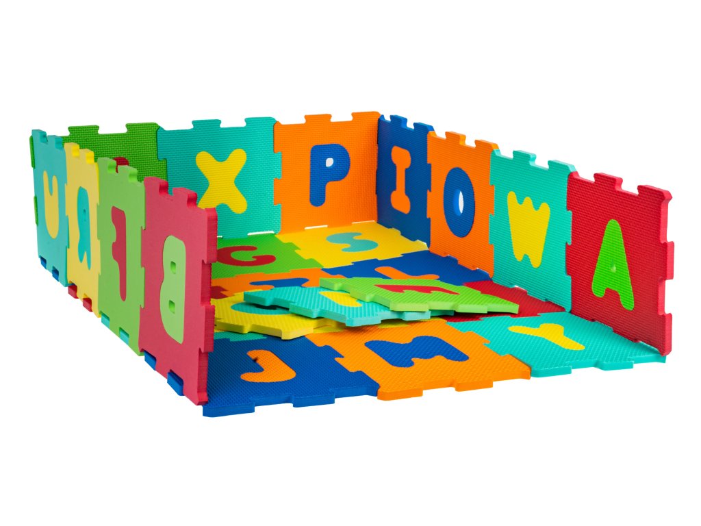 Educational, colorful foam puzzles with the alphabet are for children from 10 months of age. The puzzle is made of soft and pleasant to the touch foam, it is very easy to keep them clean, just wipe them with a damp cloth. The set consists of 26 puzzle pieces from which you can arrange a mat on the floor to protect against the cold and absorb falls, or build spatial figures, e.g. a cube. The puzzles have removable letters of the alphabet, thanks to which the baby learns to match the shapes. Features of foam puzzles: - made of child-safe EVA foam, - soft and pleasant to the touch, - colors, - anti-slip structure, - waterproof, - easy to keep clean, - protect against cold from the ground, - possibility of building a children's playpen, - cushion falls, - they teach through play - they stimulate imagination, concentration, visual-motor perception, logical thinking, teach colors, shapes, letters and building spatial figures. |