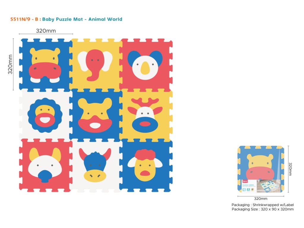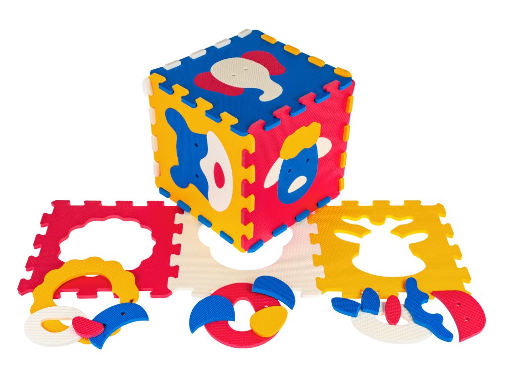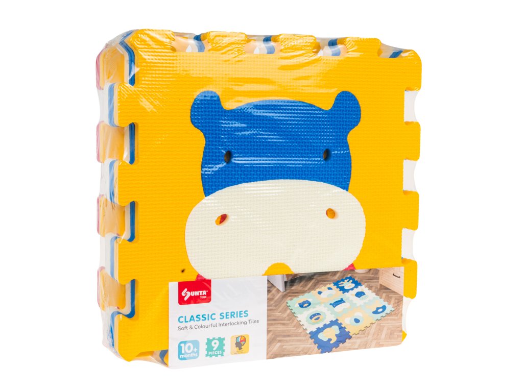 Educational foam puzzles with animals are for children from 10 months of age. The puzzle is made of soft and pleasant to the touch foam, it is very easy to keep them clean, just wipe them with a damp cloth. The set consists of 9 puzzles from which you can make a mat on the floor to protect against the cold and absorb falls, or build spatial figures, e.g. a cube. Inside each puzzle there is a removable animal consisting of several elements. After taking out the animal, the baby will try to match the shapes to the appropriate holes, which will make the game more interesting and educational. Features of foam puzzles: - made of child-safe EVA foam, - soft and pleasant to the touch, - colors, - anti-slip structure, - waterproof, - easy to keep clean, - protect against cold from the ground, - cushion falls, - they teach through play - they stimulate imagination, concentration, visual-motor perception, logical thinking, teach colors, shapes and building spatial figures, - inside each puzzle there is a removable animal consisting of several elements. |