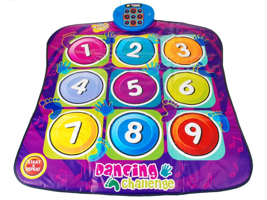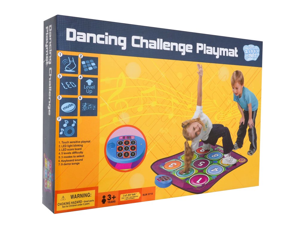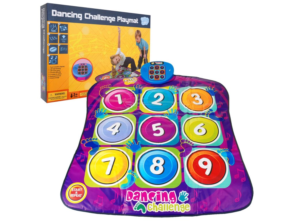 | DANCING CHALLENGE - the musical version of Twister in colors perfectly combines gymnastics with great fun. The main task will be to maintain the balance by standing on the hands and feet on more and more colored mats with specific symbols - numbers, it is not so easy in the close company of other players The game has 5 levels of difficulty. I level - you have to focus on the control panel, observe it and he will show you which one you have to press on the mat. This level lasts for 1 minute. During the game, you can make 7 mistakes, if you make fewer than 7 mistakes, you will automatically move to the next level of the game. II level - it consists in changing the pace at which light tips will appear, it will be shorter which means a more difficult game. III level - at this level of the game, two light tips can appear at the same time. IV level - the rules of the game remain the same as in the third level, on the panel you can now display 3 lights simultaneously, you will have to use your hands and feet simultaneously to press the indicated symbols on the mat. V level (last) - the principle of the game remains the same as in the previous level of the game, now 4 lights can appear on the panel, so the game will become more difficult. The toy is powered by 3 AA batteries (not included) |