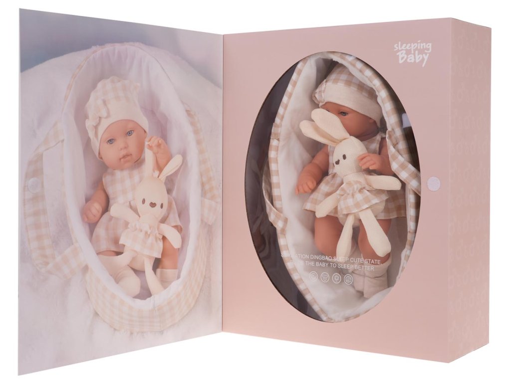 - a beautiful baby doll, - carrying basket, - cuddly bunny, - packaging perfect for a gift. |