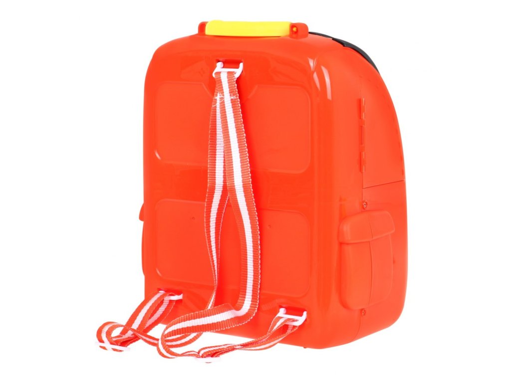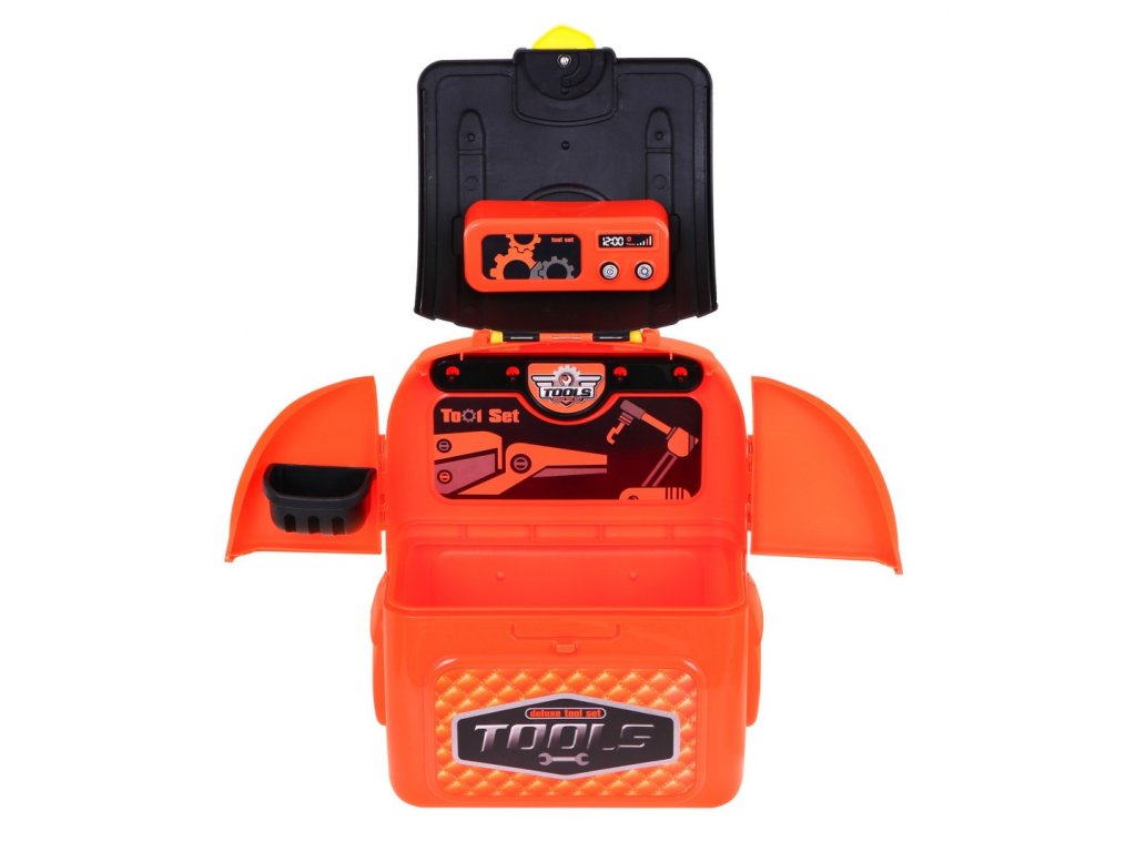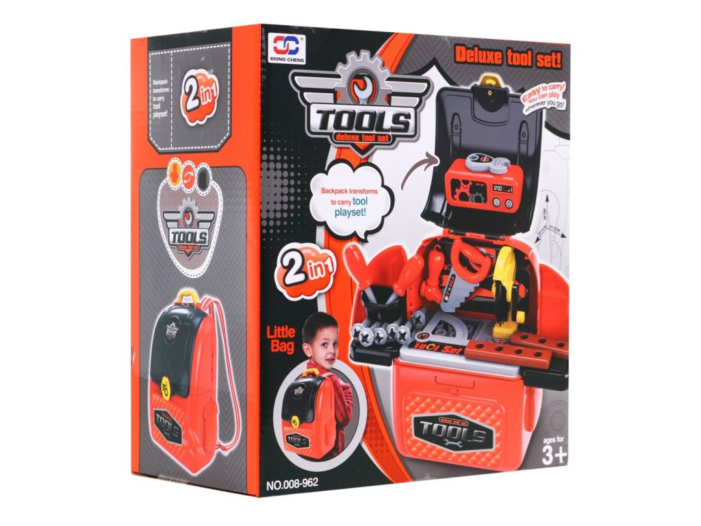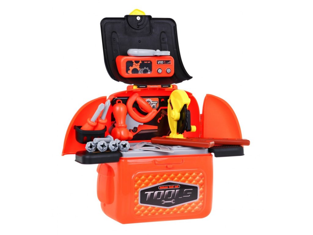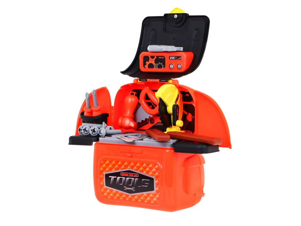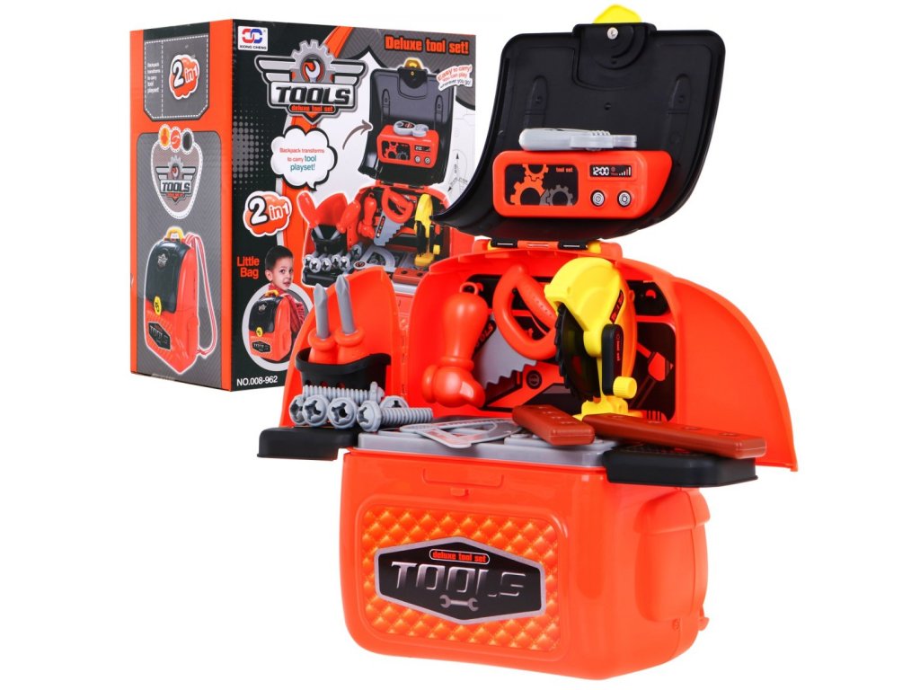 | The backpack, which is also a workshop, is a toy for children over 3 years of age.The backpack with tools can be taken anywhere, and after opening it and attaching the top, it is ready to use.It doesn't take up much space, is portable and always available.We wish you a lot of fun. |