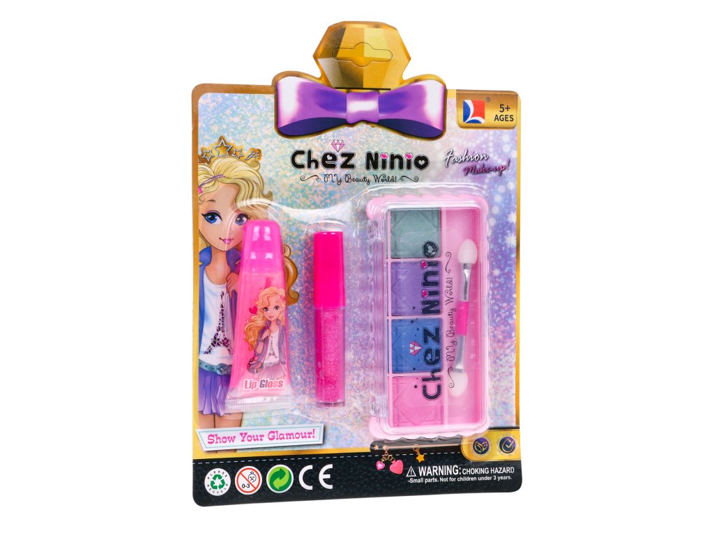 | Safe realistic make-up set for children from 5 years of age. The set includes colored eyeshadows with a brush and two lip glosses. The cosmetics are certified and safe for the delicate skin of a child, they are easy to wash off with water and do not cause allergies. |