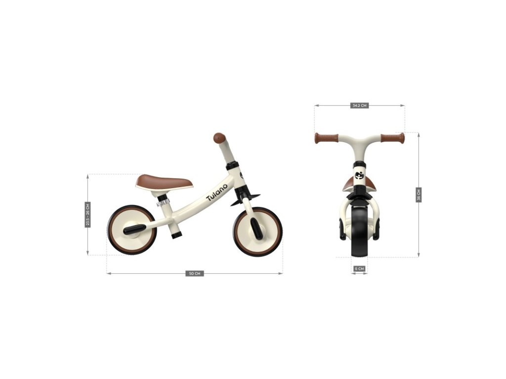 Speciální funkce: Pro děti od 18 do 48 měsíců a s maximální hmotností 30 kg Ideální pro učení rovnováhy, rozhodování a rozvoj koncentrace Nepropichovací 6 cm široké pneumatiky z pěny EVA zajišťují větší stabilitu než jiné modely na trhu Nízký rám usnadňuje nastupování Jednoduchá a rychlá montáž bez použití nářadí Nastavitelná výška sedla od 23,5 cm do 26 cm Velké, pohodlné sedlo Volant s otočným zámkem Protiskluzové rukojeti Robustní ocelový rám Velmi lehký a snadno přenosný - váží méně než 3 kg Pro vnitřní i venkovní použití Splňuje normy EN 71-1, 71-2, 71-3 Certifikát CE Běžecké kolo Scout 15 Nejlepší společník pro každého prcka Se Scout 15 se každá procházka stane nezapomenutelným dobrodružstvím. Bezdušové pláště o šířce až 6 cm zajišťují větší stabilitu než většina modelů na trhu. S hmotností pouhé 3 kg je Scout vhodný pro každého od 18 do 48 měsíců. Hledáte kolo pro mladší dítě? Podívejte se na náš model Scout 20, který je vhodný pro děti již od jednoho roku. Rozvoj koordinace a motorických dovedností Používání terénního kola je skvělým začátkem aktivního životního stylu. Jízda aktivuje téměř všechny svaly, rozvíjí motorické dovednosti a koordinaci. Batole se může zdokonalovat v balancování a otáčení a díky nízkému rámu se na kolo snadno nasedá i sesedá. Absence brzd a pedálů stimuluje soustředění a rychlé reakce, takže odrážedlo Scout 15 připraví vaše batole na jízdu na tradičním dvoukolovém kole. 6 cm široké pneumatiky pro větší stabilitu Scout 15 je vybaven nadprůměrně širokými pneumatikami, díky nimž je stabilnější než jiné modely na trhu. Použití lehké pěny Eva zajišťuje vynikající přilnavost na všech typech povrchu. Kola není třeba dofukovat a jsou odolná proti propíchnutí. Pro vnitřní i venkovní použití Měkký materiál zaručuje tichou jízdu a nepoškrábe podlahu. Díky tomu je Scout 15 vhodný pro vnitřní i venkovní použití Volant se zámkem řízení Volant vybavený otočným zámkem zajišťuje bezpečnost vašeho dítěte. Blokovací mechanismus omezuje rozsah pohybu řídítek, čímž zabraňuje pádům při učení zatáčení. Protiskluzové rukojeti Ergonomické rukojeti s protiskluzovou úpravou pro bezpečné uchopení a pohodlnou jízdu. Odolný ocelový rám Základem konstrukce je ocelový rám, takže kolo snadno vydrží i intenzivní jízdu a hru. Nastavitelná výška sedla Výška sedla jenastavitelná od 23,5 cm do 26 cm, takže kolo můžete snadno přizpůsobit výšce dítěte od 18 do 48 měsíců. Díky tomu si vaše dítě může osvojit správný postoj při jízdě. Velké, pohodlné sedlo Velké tvarované sedadlo zajistí vašemu dítěti pohodlí při krátkých i dlouhých jízdách. Rychlá montáž Montáž autosedačky Scout nevyžaduje žádné nářadí a zabere jen několik okamžiků. Kolo váží pouhé 3 kg, takže se pohodlně vozí i přenáší. Vaše dítě tak může objevovat svět, ať jste kdekoli - na zahradě, v parku nebo na cestách. Specifikace Výrobce: Tulano Model: Scout 15 Věkový rozsah: 18 - 48 měsíců (max. 30 kg) Barva: krémová, hnědá a černá Nastavení výšky sedla: ano, od 23,5 cm do 26 cm Materiál: ocel (rám), EVA pěna (pneumatiky), TPR guma (rukojeti) Šířka koleček: 6 cm Hmotnost: 2,95 kg Splňuje normy EN 71-1, 71-2, 71-3, označení CEDoplňkové parametry