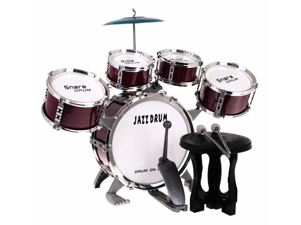 - drums with 5 drums, a cymbal and a set of sticks, - chair. |