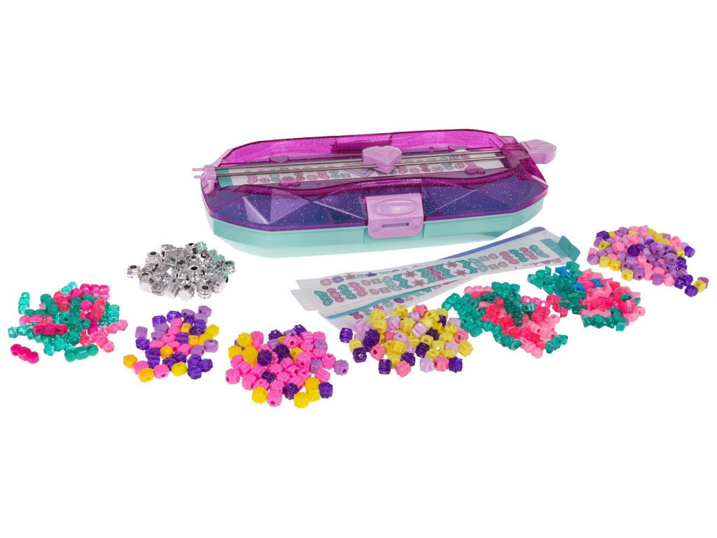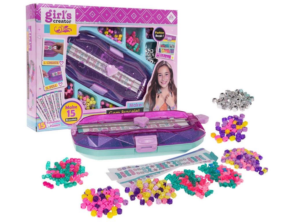 - bracelet making machine with accessory container, - over 400 colorful beads, - 15 bracelet patterns, - 2 bags of string, - pictorial instructions. |