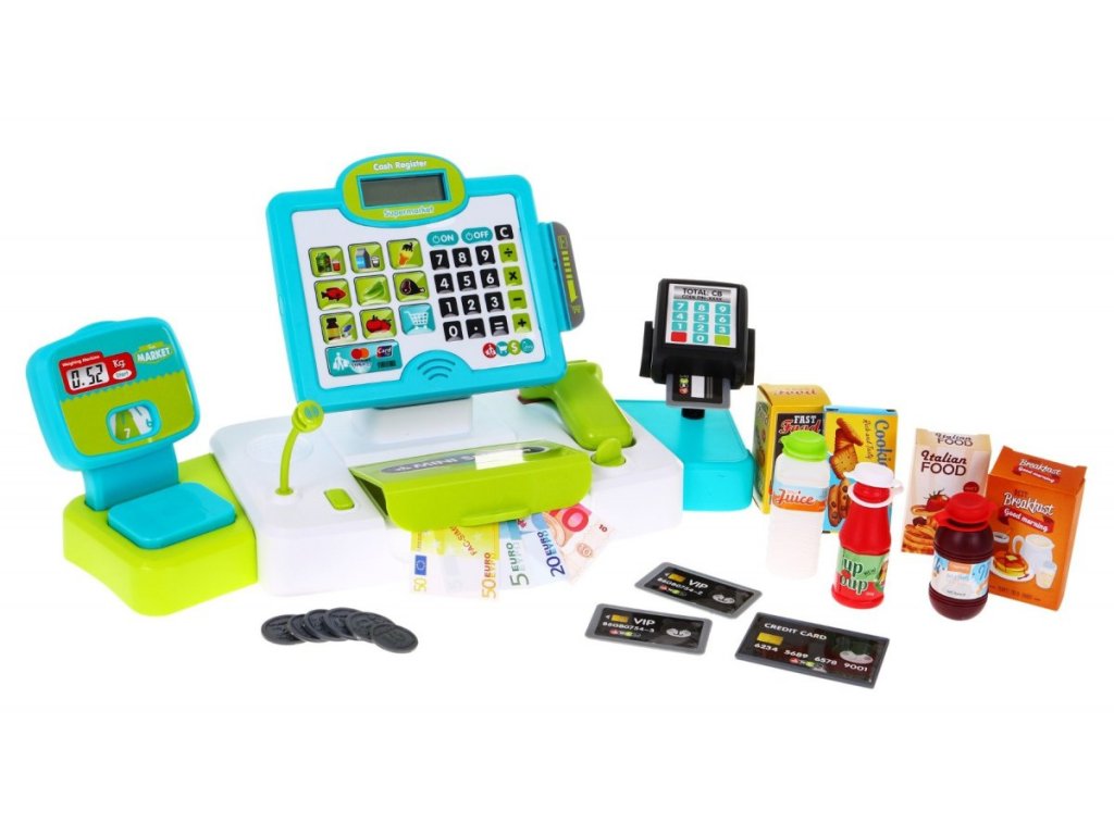 The perfect toy for small sellers. It will definitely give you a lot of joy in playing big and small together. The cash register has a touch panel, calculator, dummy card reader, dummy scale, microphone dummy, scanner dummy, opening drawer for banknotes and coins. The toy is intended for children from 3 years of age. The toy is powered by 2 x AA batteries - safe (not included) and 1 x AAA - scanner (not included). The toy has sound effects (touch panel and scanner) and light effects (scanner). | |