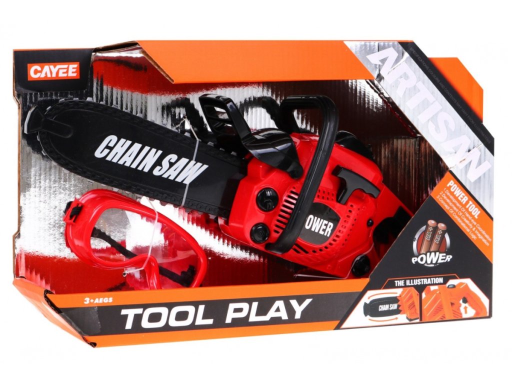 | This toy perfectly imitates a real chainsaw. It makes realistic sounds and has a rotating rubber safe chain. The toy is intended for children from 3 years old and has the CE certificate. The toy is powered by 3 x AA batteries (not included) |