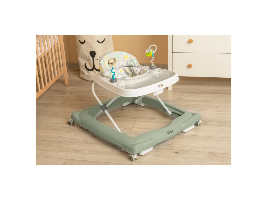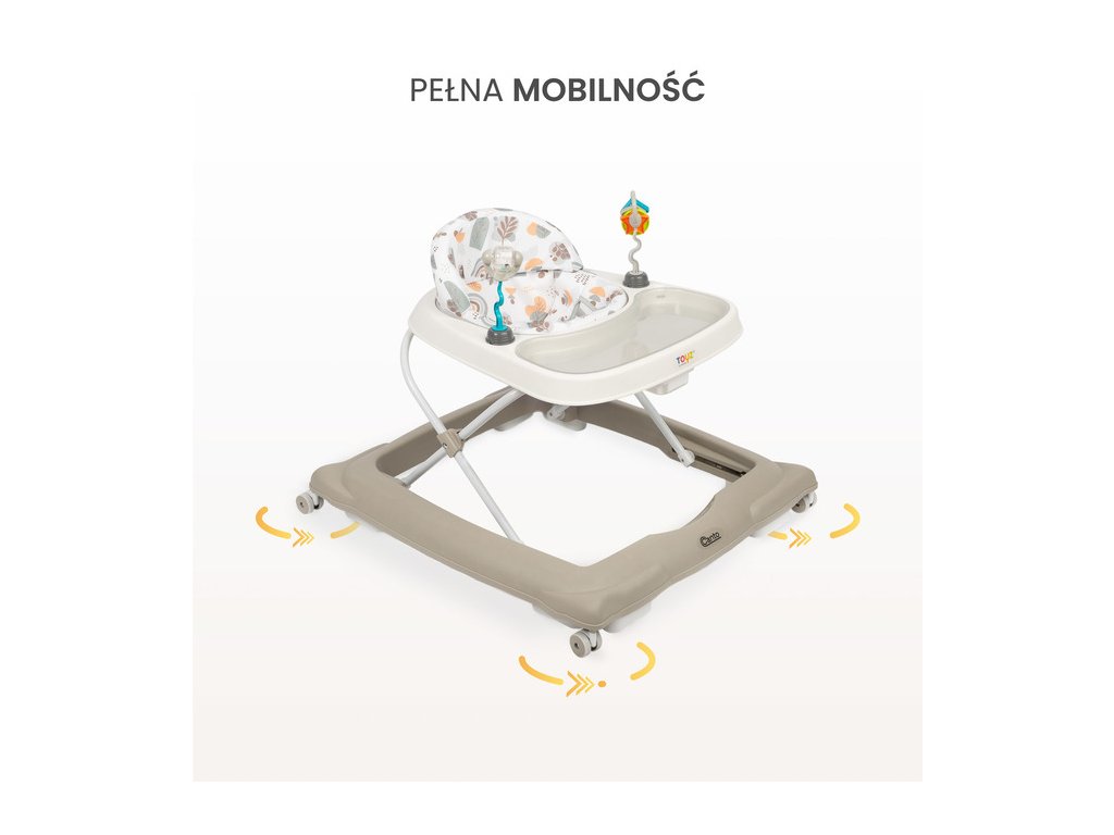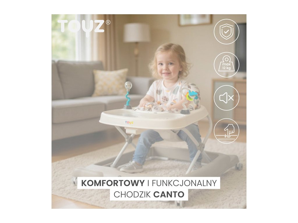 Canto to przestronny i wygodny chodzik marki Toyz, zaprojektowany z myślą o bezpieczeństwie, funkcjonalności i swobodzie ruchów dziecka. Wszystkie kółka chodzika są skrętne, znacząco ułatwiając manewrowanie. Regulacja wysokości siedziska umożliwia dostosowanie chodzika do wzrostu dziecka, zapewniając mu wygodę i prawidłowe ułożenie ciała. Gumowe wykończenia kół oraz stopery gwarantują bezpieczeństwo i ochronę podłóg przed zarysowaniami. Subtelna kolorystyka i staranne wykonanie sprawiają, że chodzik doskonale wpisuje się w estetykę nowoczesnych wnętrz.