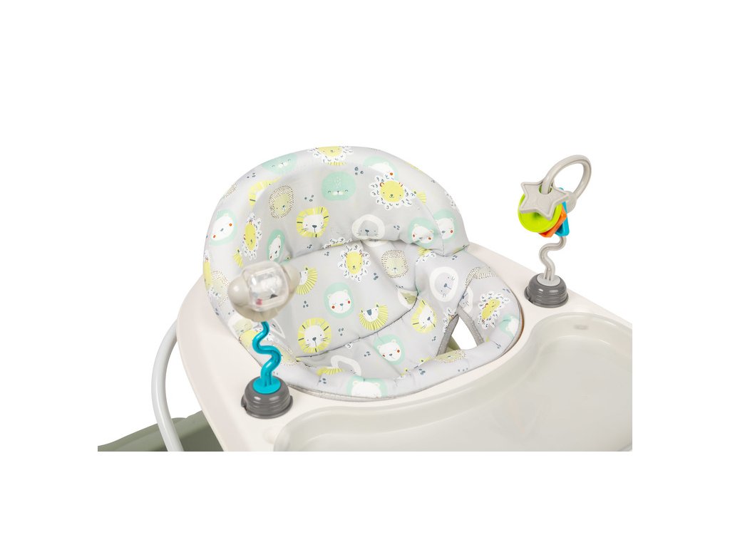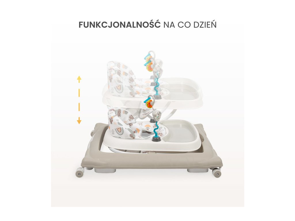 Siedzisko z możliwością regulacji wysokości (od 22 do 26 cm) pozwala idealnie dopasować chodzik do wzrostu malucha. Wyprofilowane oparcie i miękka konstrukcja wspierają prawidłowe ułożenie pleców, co przekłada się na wygodę i zdrowy rozwój.