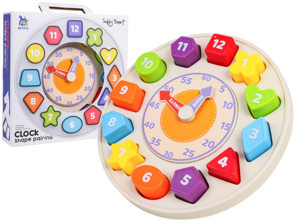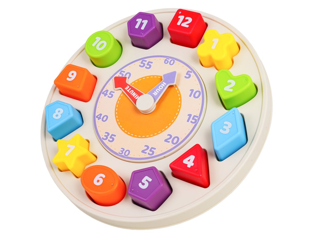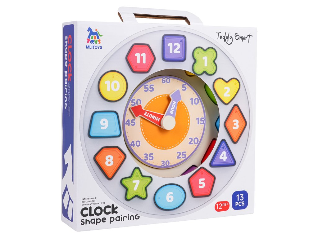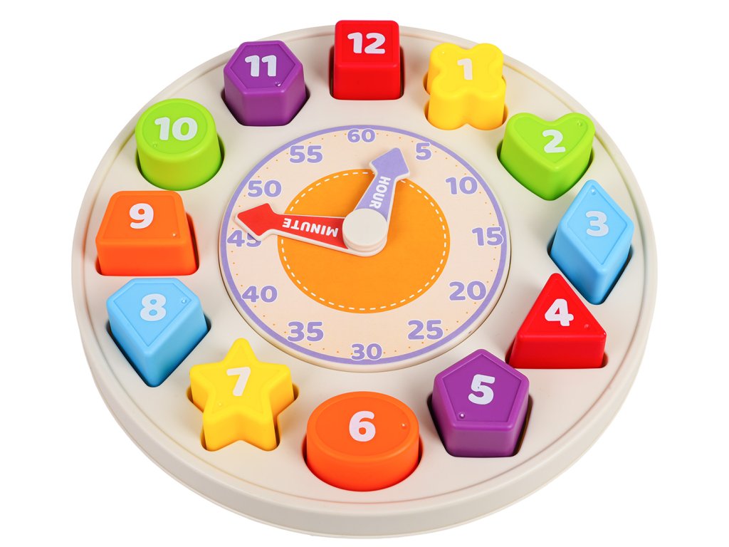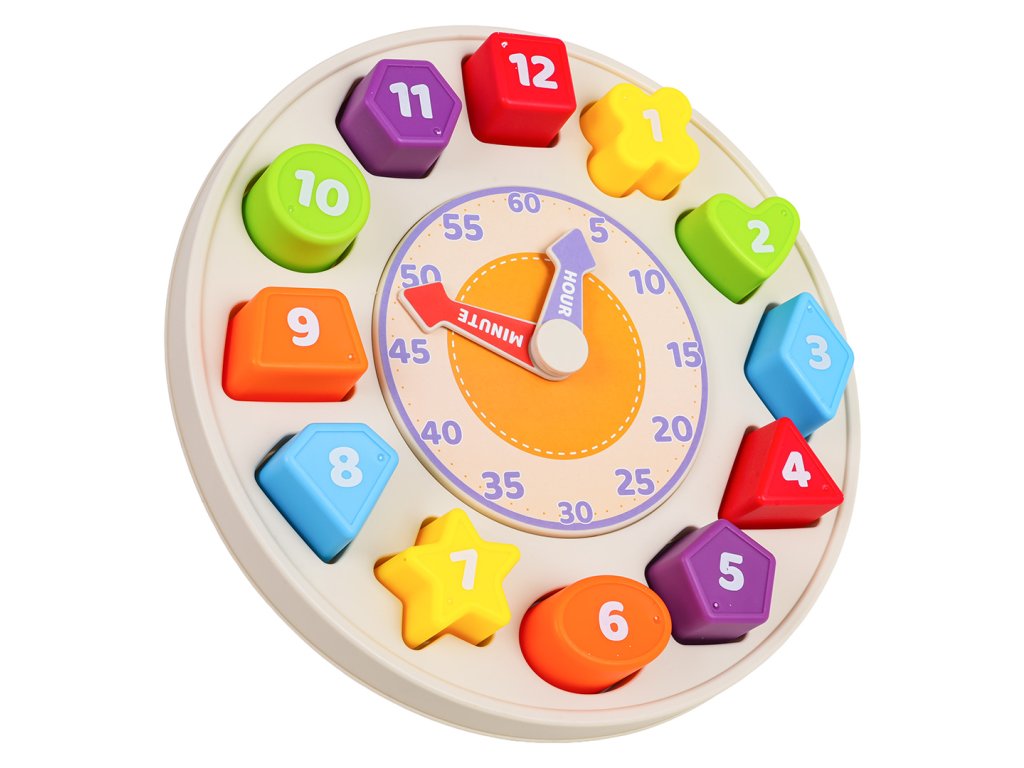 Features: - suitable for children from twelve months of age, - made of safe materials, - vivid colors encourage play, - teaches how to recognize minutes, hours, shapes, colors, - exercises the baby's hands, - stimulates on many levels, - the clock can be hung on the wall (hanger on the back). |