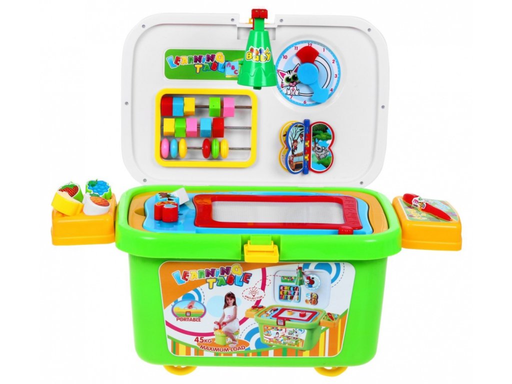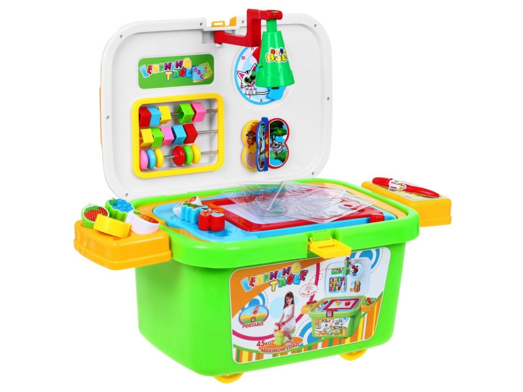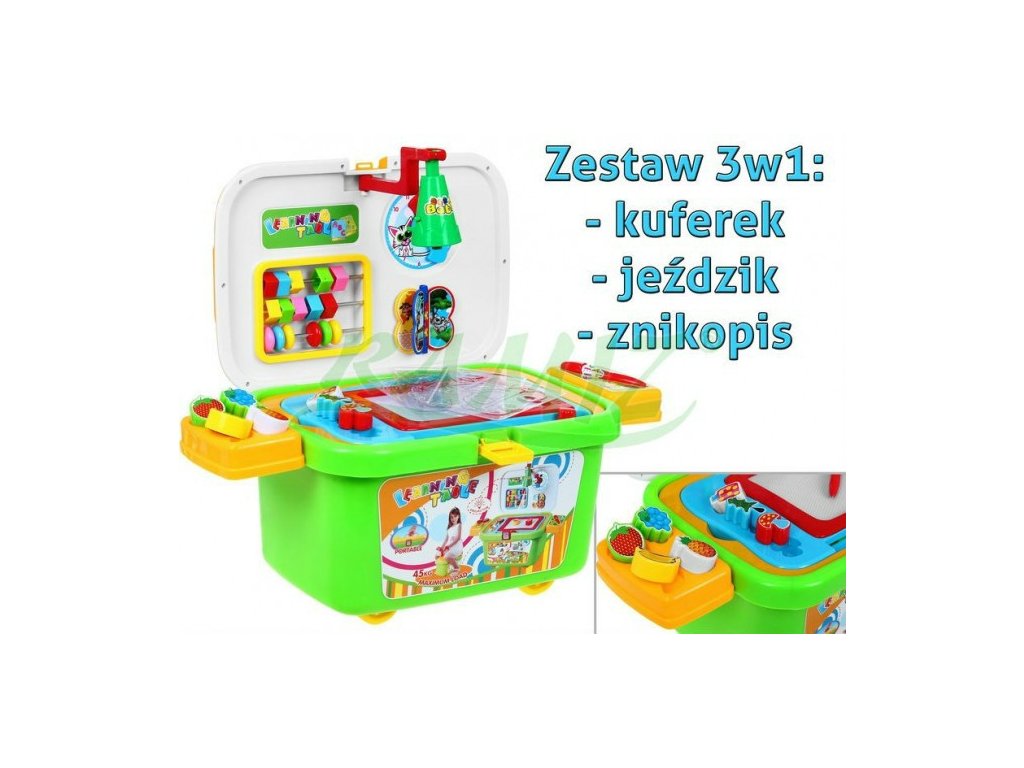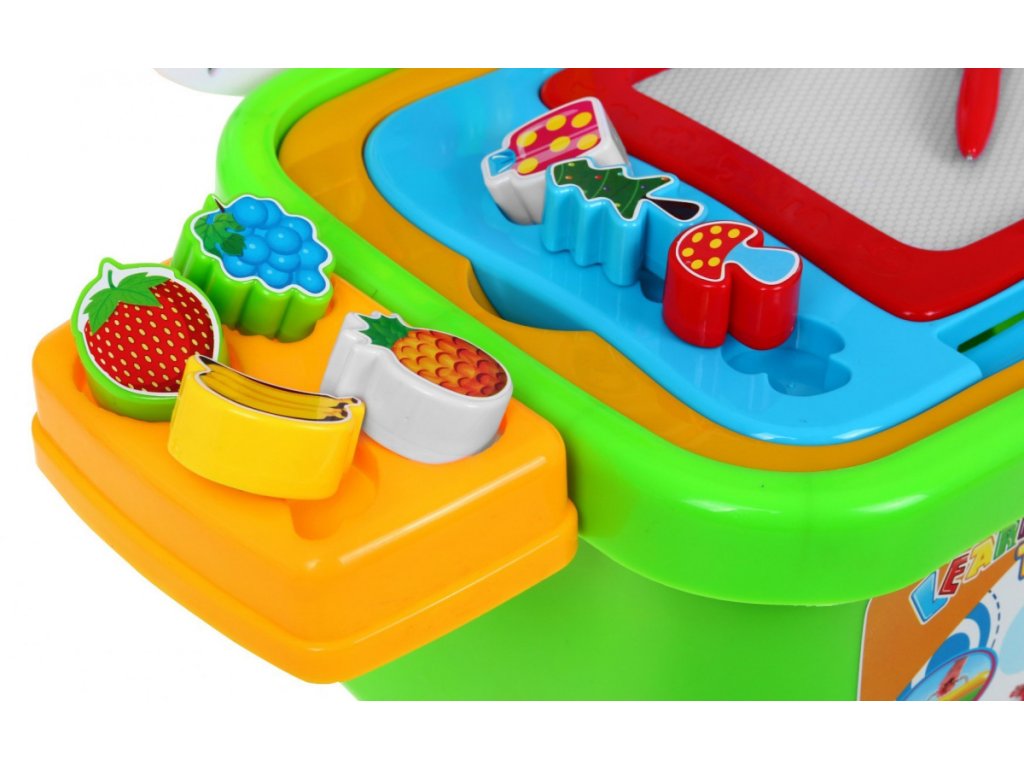 | The toy was designed for the youngest children, therefore the box has vivid colors that are pleasing to the eye, and the individual elements have additional colorful decorations. The trunk is full of surprises. When the chest opens, the child will go to the land of sorcery. We will find here, among others: - a portable penny, after which you can write, paint, reflect stamps, - large colored abacus, - clock - 7 stamps, - stickers to further decorate the colorful box, - 4 templates with patterns for drawing, - lamp - projector, powered by batteries type AG13 (3 x 1.5V - included in the set), - steering wheel, - two side shelves with containers for stamps and a pen. This multifunctional toy simultaneously develops the imagination, concentration and coordination of the toddler. At the same time, he teaches and entertains - learning through creative play. Through play, the child learns logical thinking, recognizing colors and shapes. He trains manual skills, learns the combination of colors, learns letters, numbers and mathematical symbols. |