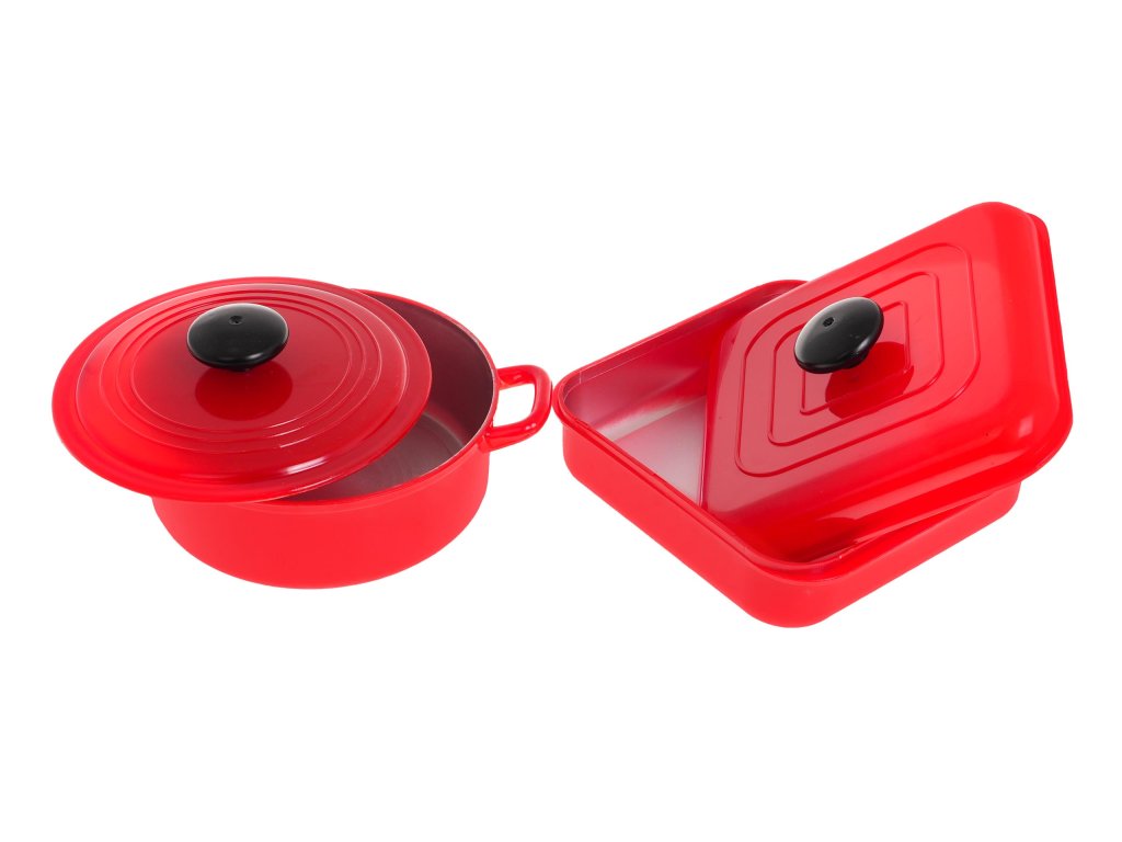- square pan approx. 21 cm x 13 cm, - round pan approx. 19 cm x 13 cm, - a square pot with a lid, approx. 12 cm x 6 cm, - round pot with lid approx. 13 cm x 5 cm, - cloth approx. 12 cm x 12 cm, - ladle approx. 17 cm high, - shoulder about 17 cm high, - spoon approx. 17 cm high. |