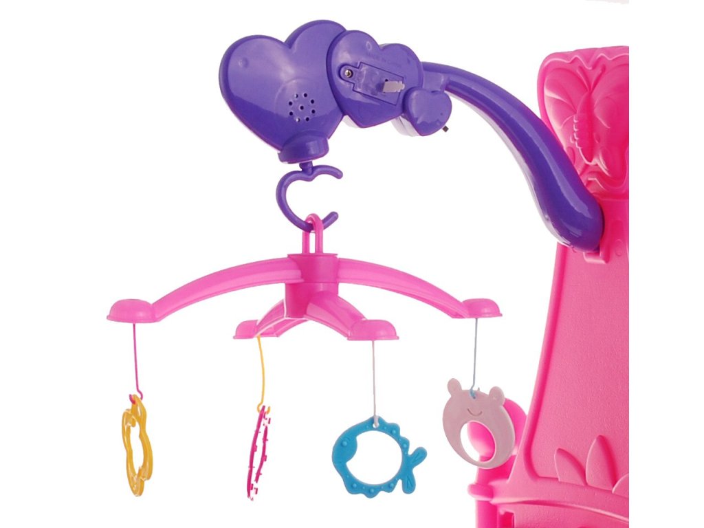 Fantastic, richly equipped crib with a colorful carousel with sound effects, is a proposal for each DOLL up to approx. 50 cm. Children love to watch the surroundings, which is why they often play in the shop or house. They play a variety of roles by playing different characters. Presented crib and equipment can be a great diversion of such fun. The new "design" of the cot and extremely rich equipment are suggestions that no small householder can afford to miss. The perfect proposition for girls who like to play with dolls. Thanks to this set, a small babysitter can easily suck a beloved toddler to sleep. Toy will certainly appeal to all little ones who like playing at home. Make your child learn how to be gentle and care for the loved ones from an early age. | |