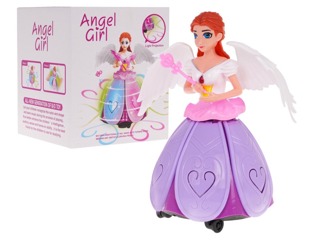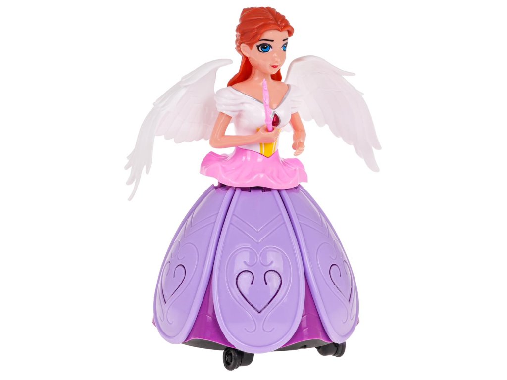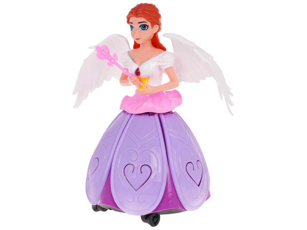 A fairytale interactive fairy with sound and light effects for children aged 3 and over. The magical fairy is powered by 3 x AA 1.5 V batteries (not included). After switching it on, it starts dancing and rotating 360 degrees. Its wide skirt is illuminated, creating amazing light circles when rotating. During the dance, you can also hear magical music that takes us to the world of fantasy.