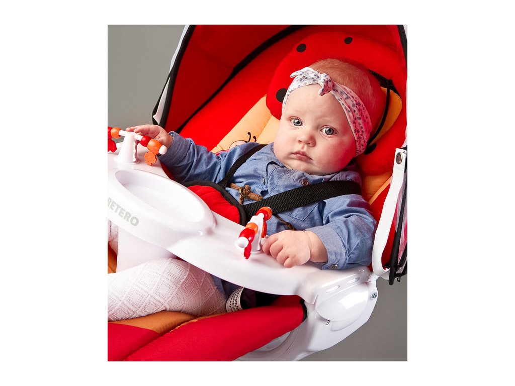 - bezpečnost používání houpačky je zajištěna pevnými 5-bodovými bezpečnostními pásy a podnosem