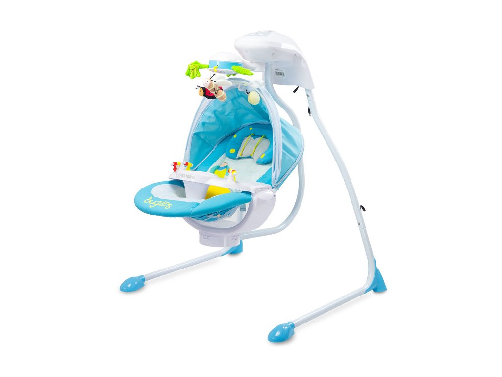Bugies je špičková elektrická houpačka. Byl vytvořen pro nejnáročnější rodiče, kteří hledají produkt, který pomáhá v bezpečném a harmonickém vývoji jejich dítěte. S pohodlným sedadlem, 5bodovým bezpečnostním pásem, kolotočem s legračními maskoty, melodiemi a mnoha houpacími prvky je Bugies ideálním místem pro odpočinek vašeho dítěte během dne.