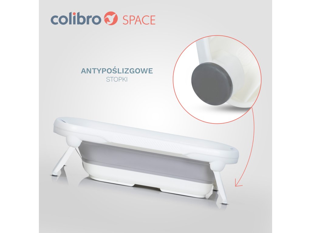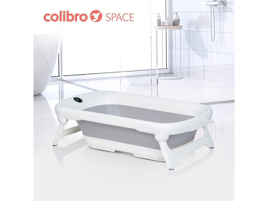 COLIBRO SPACE Dětská vana – skládací silikon s teploměrem COLIBRO SPACE je velká skládací dětská vana s vestavěným teploměrem, držákem na sprchu a protiskluzovou podložkou. Je určen pro děti od narození do 3 let věku. Tak dlouhé období užívání je zajištěno jeho velikostí a kapacitou.