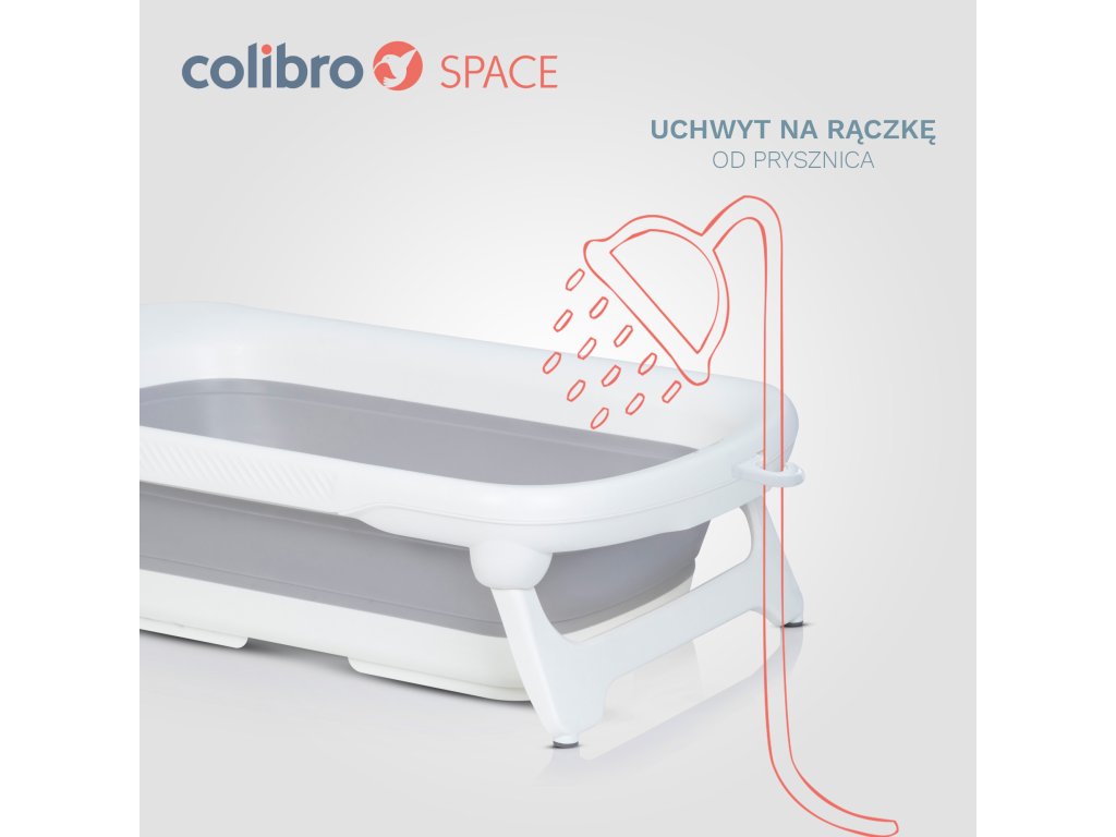 Držák na sprchu umožňuje namontovat sprchový nástup na konec vany, takže máte obě ruce volné. Koupání zaneprázdněného miminka bude mnohem jednodušší. Vana COLIBRO SPACE má vestavěnou gumovou protiskluzovou podložku, která zabraňuje uklouzání dítěte během koupání.