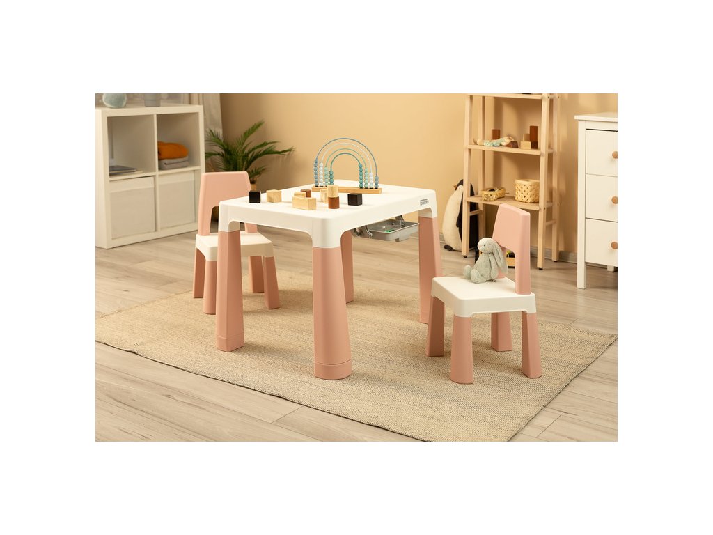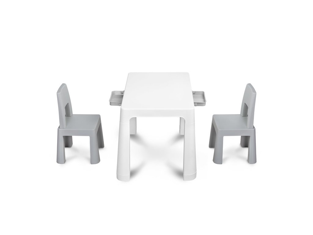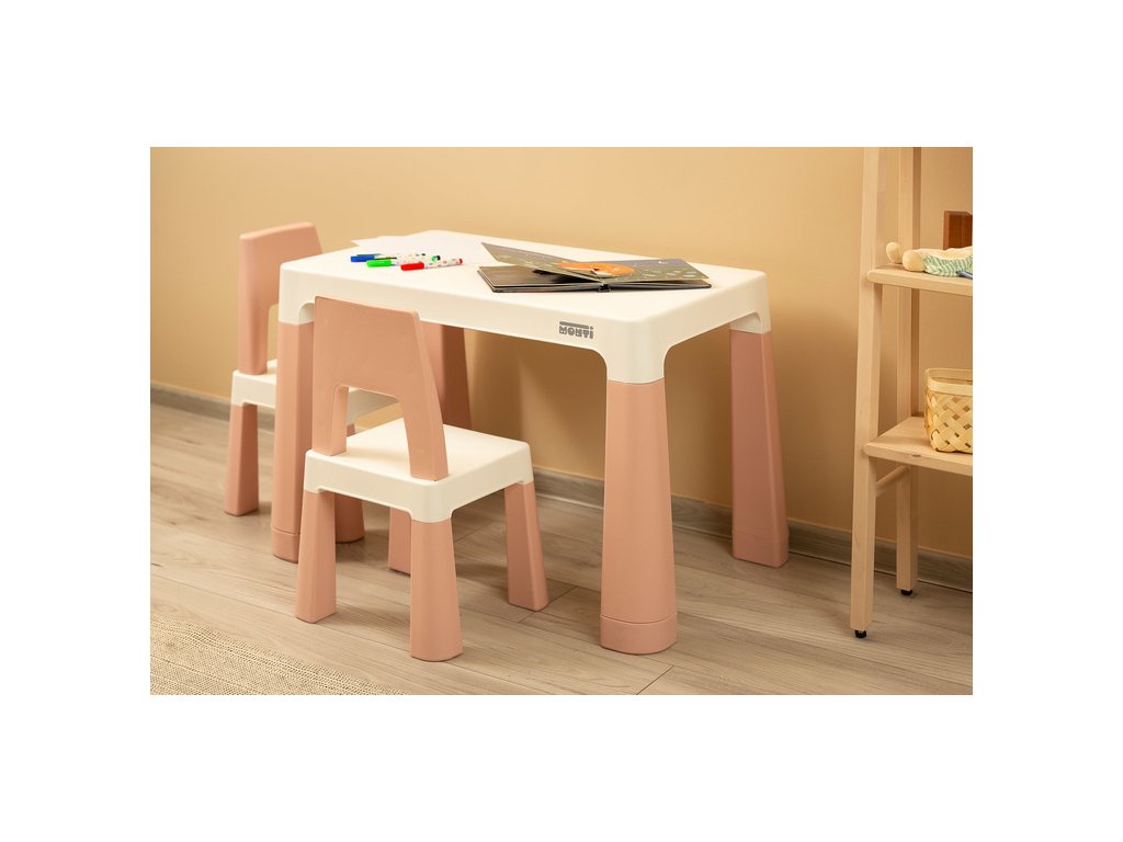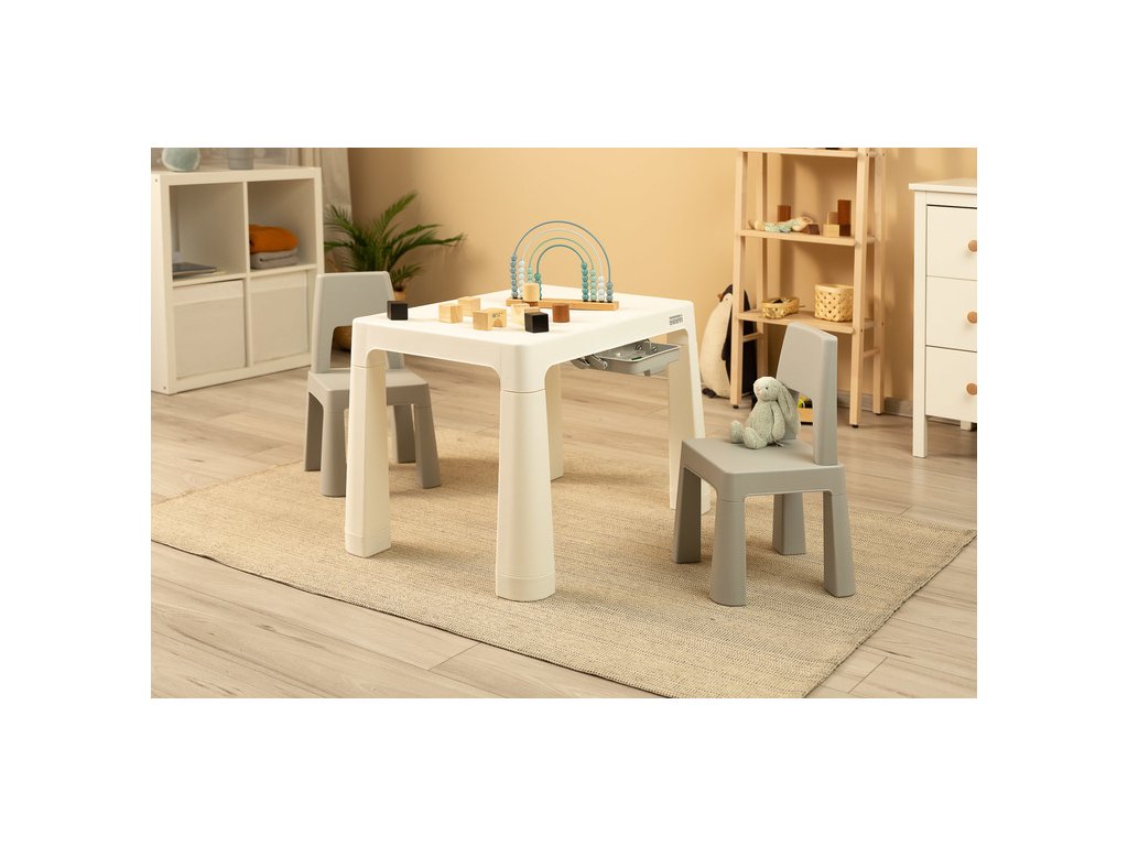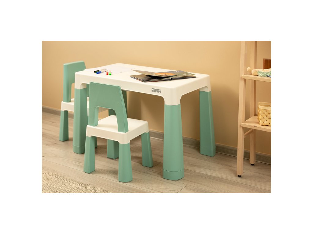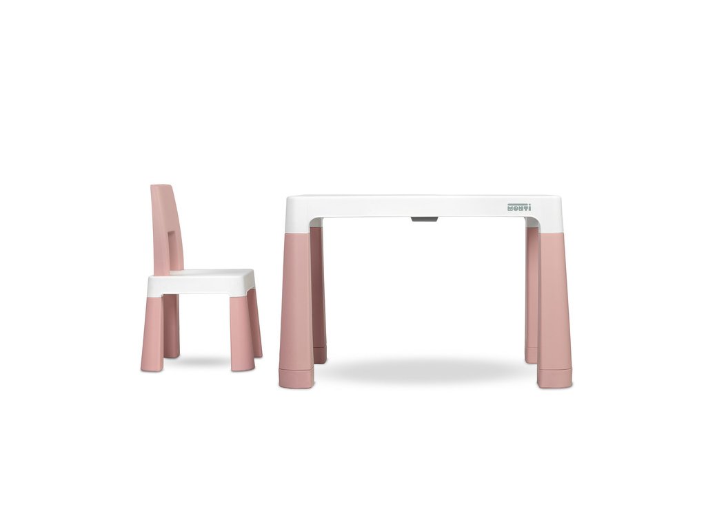 Monti je univerzální stůl pro děti s vysokými židličkami. S jeho pomocí můžete snadno vytvořit koutek pro uměleckou práci nebo hrát doma i venku. Sada je vyrobena z vysoce kvalitního plastu - bezpečného a odolného vůči různým rozmarům počasí a divoké zábavě. Stůl a židle jsou lehké, takže je dítě může nosit samostatně. Díky jednoduchému designu lze Monti snadno složit – stačí zatlačit do prvků. Stůl má 2 zásuvky, které se skrývají pod pracovní deskou, a má také schopnost snížit výšku o 6 cm.