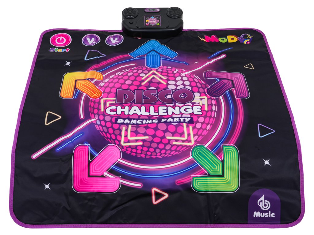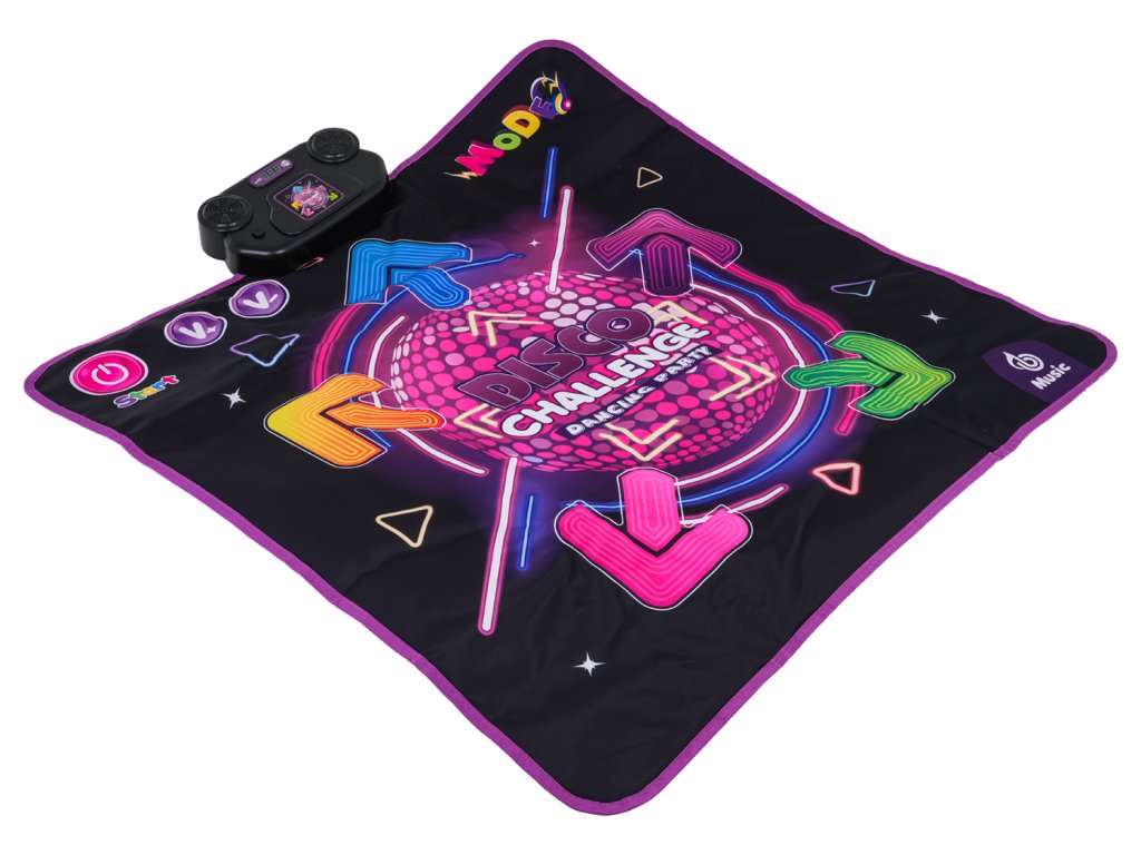 A dance mat with sound and light effects for children aged three and up. Made of the highest quality materials, the mat is waterproof and has a non-slip base. A panel on the top of the mat displays earned points and tasks—flashing arrows indicating which squares to touch on the mat. Children can press these squares with their hands or feet. The mat features a dance square, an on/off switch, and volume control. There are four game modes: default mode, play mode, challenge mode divided into 9 levels, and memory mode divided into 10 levels. Playing with the mat promotes hand-foot coordination, improves physical fitness, and increases interest in dancing. The mat is powered by 4 x AA 1.5V batteries (not included).