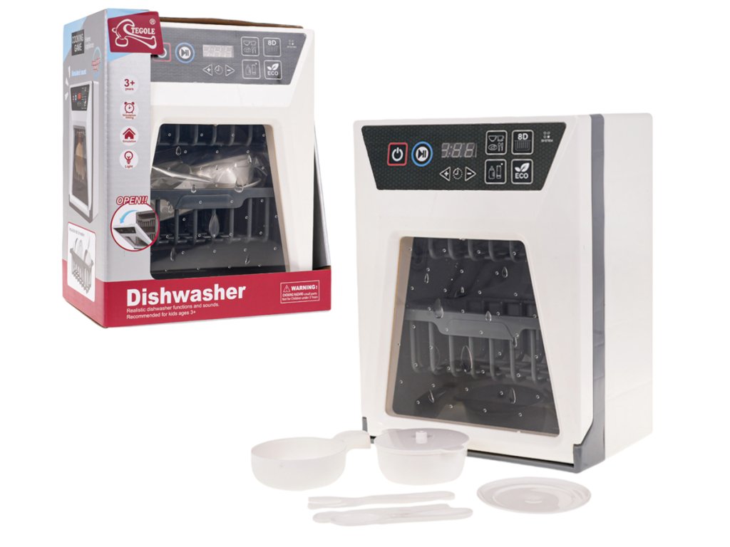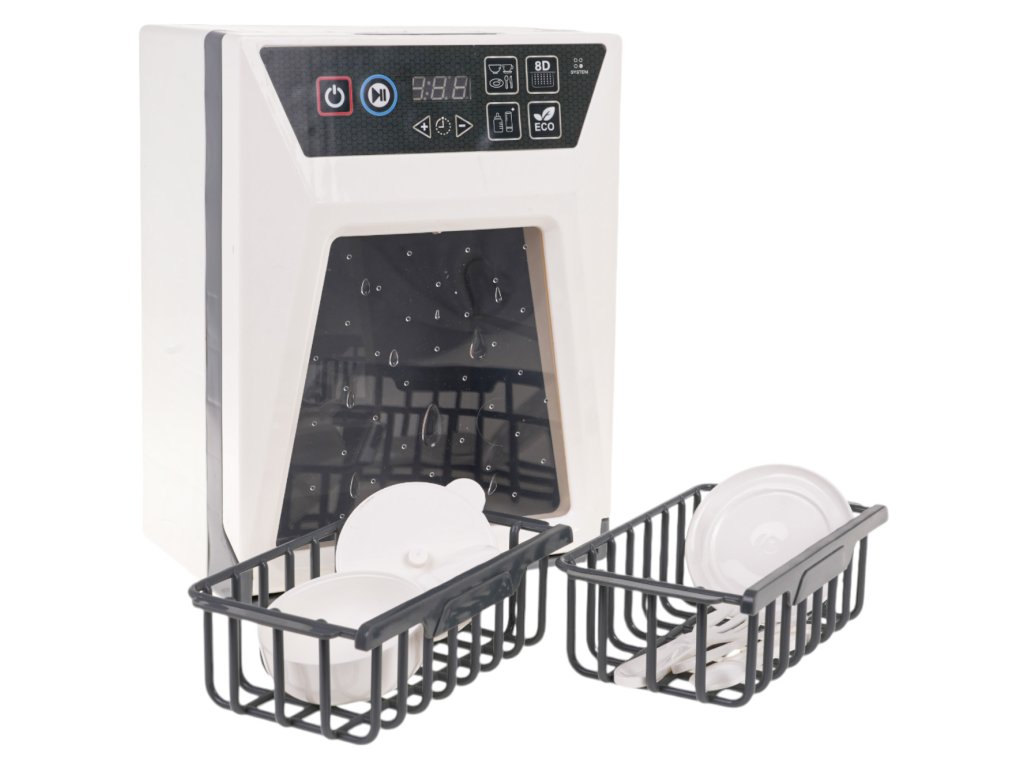 Dishwasher functions: - suitable for children from 3 years of age, - made of high quality materials, - battery powered, - counts down the time of a given program, - sound functions, - light functions, - opening doors, - removable basket for washing items, - washing accessories included. |
