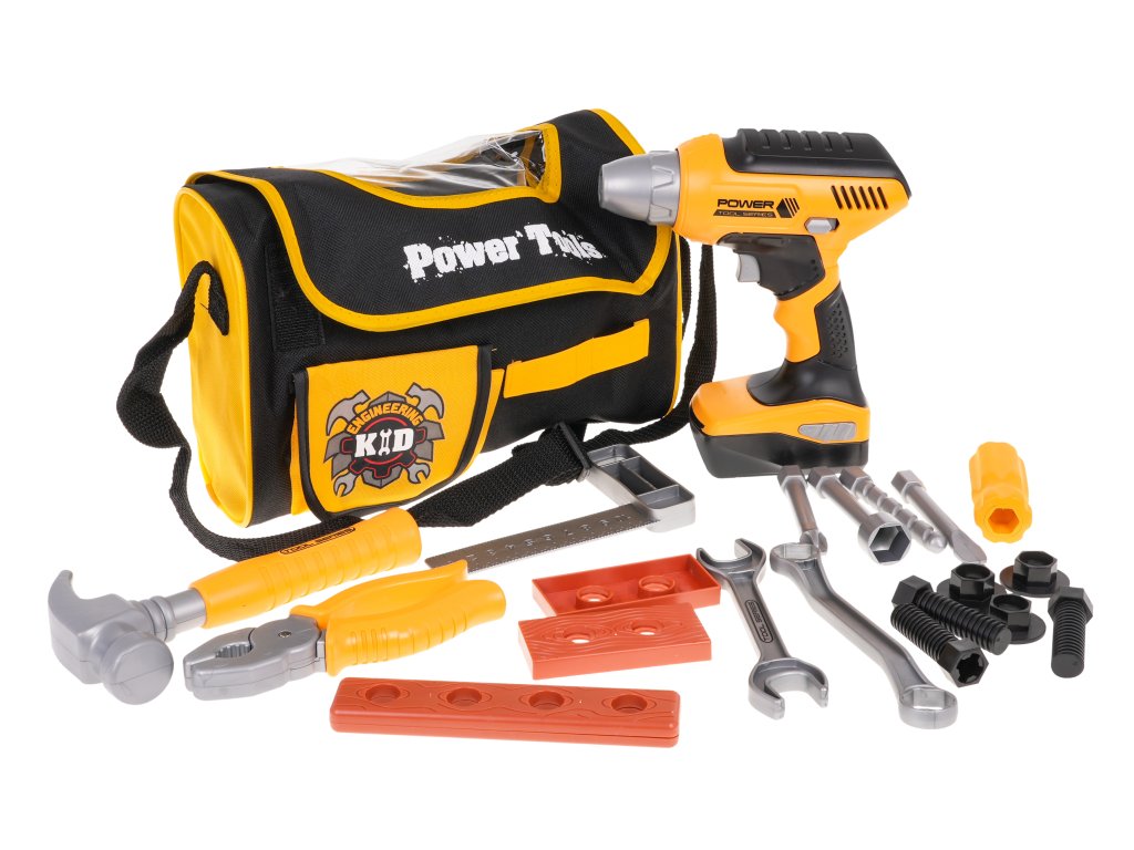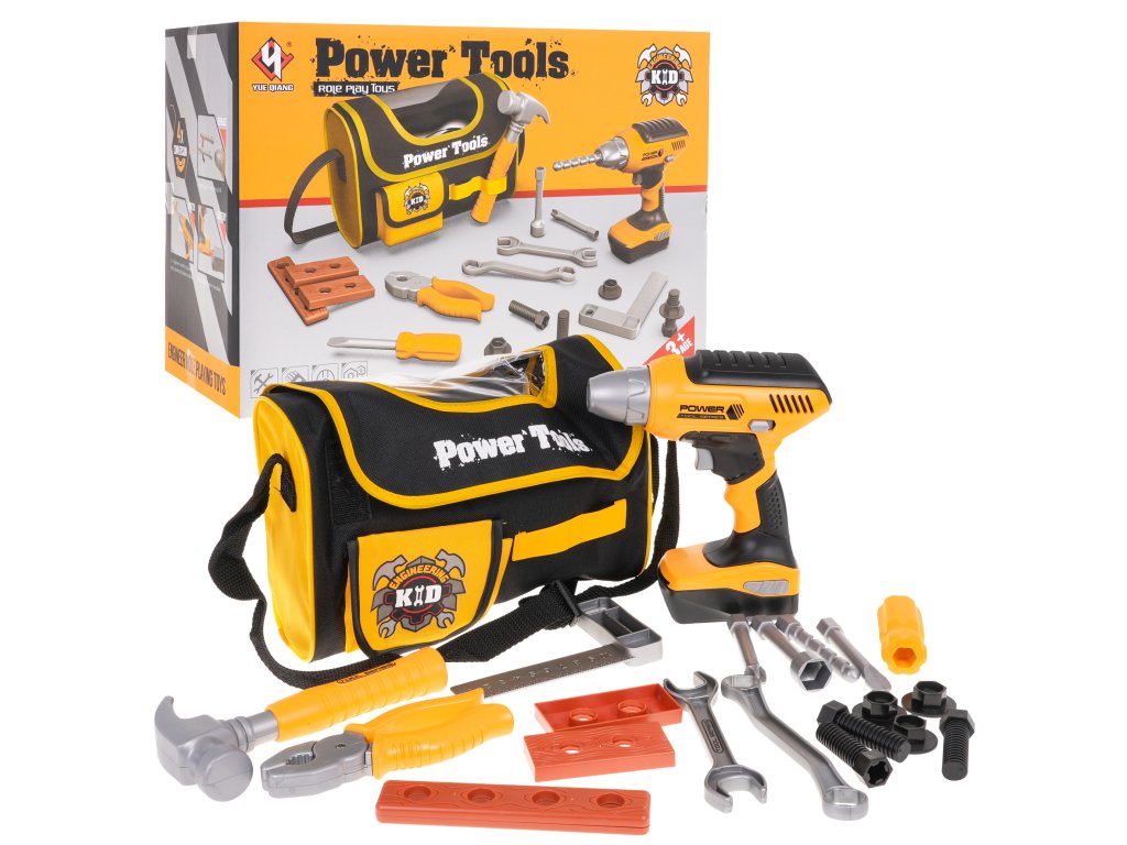 A fantastically made DIY set with a screwdriver and drill and a tool bag is suitable for children from 3 years of age. Not only does the screwdriver look like a real one, it also works. It has interchangeable bits that can be changed freely, and thanks to two directions of rotation, it can be used to screw and unscrew. The screwdriver has sound and light functions. Additionally, the battery in the screwdriver can be removed like in adult tools. It is powered by 3 x AAA 1.5V batteries, not included. In addition to the screwdriver, the set also includes DIY tools such as a screwdriver with replaceable tips, an angle measure, wrenches, screws, and screwdriving elements. After playing, we can put all the tools in the bag. In addition to the main compartment fastened with Velcro, the bag also has a small pocket on the front and stitching into which you can insert, for example, a screwdriver. The bag is equipped with a shoulder strap. |