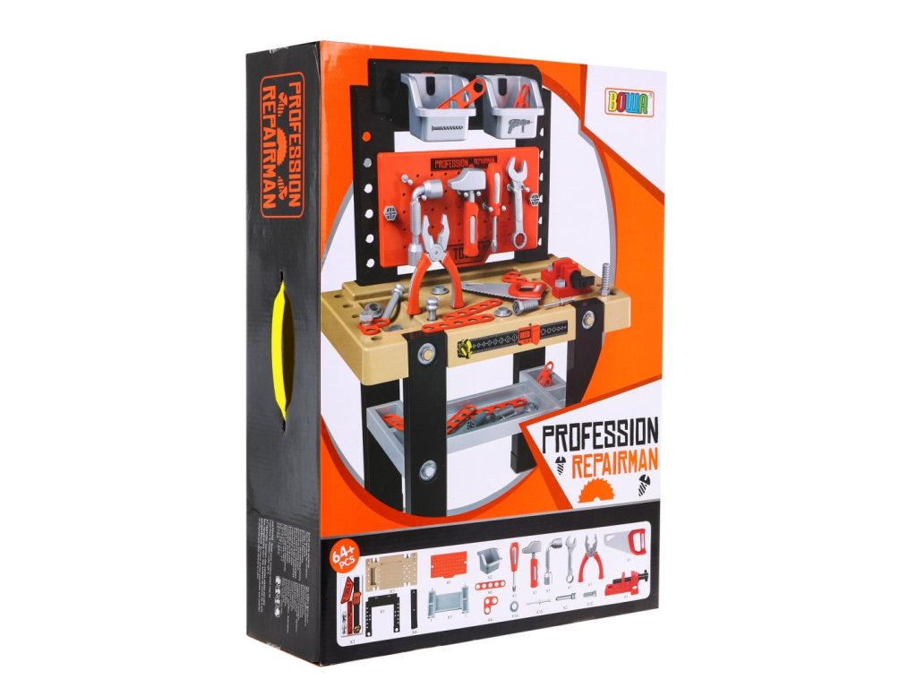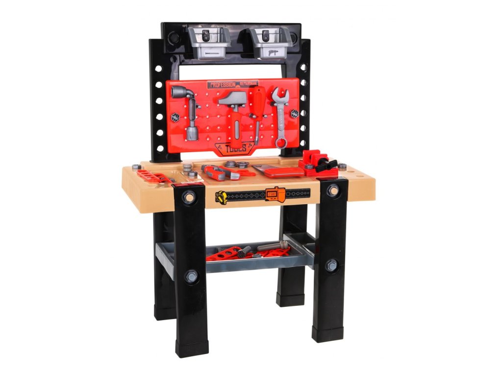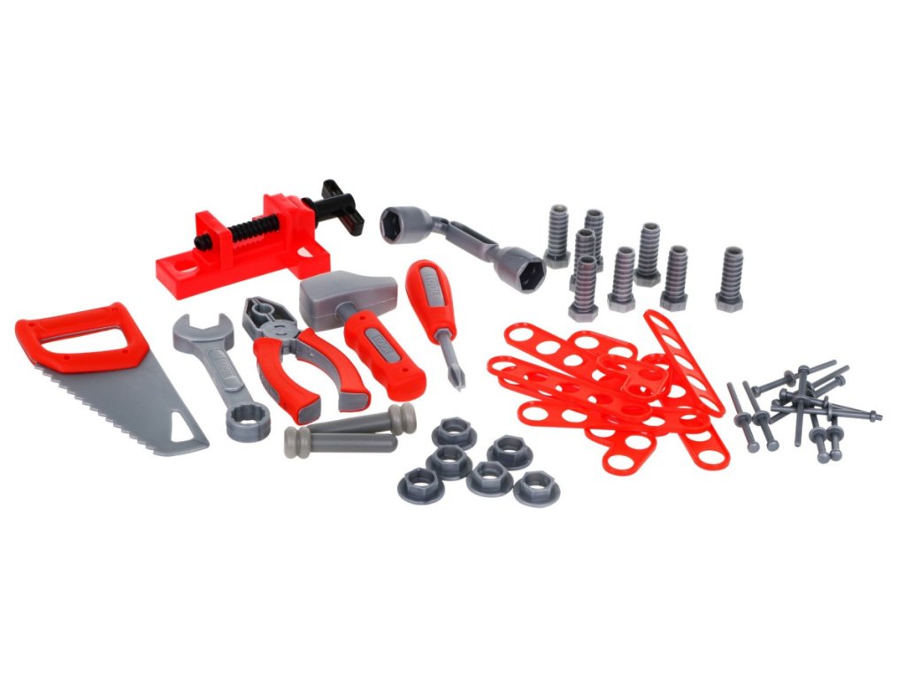 | A richly equipped set for children from 3 years of age is a treat for small DIY enthusiasts.Playing with tools has a positive effect on the development of manual skills, imagination and creativity.This amazing set includes: - vice, - saw, - pliers, - keys, - hammer, - screwdriver, - two screw containers, - 14 overlays, - 6 sticks with holes for screws, - 10 nails, - 2 pins, - 10 screws, - a set of stickers. |