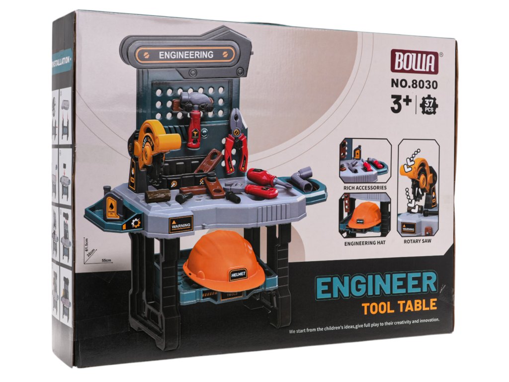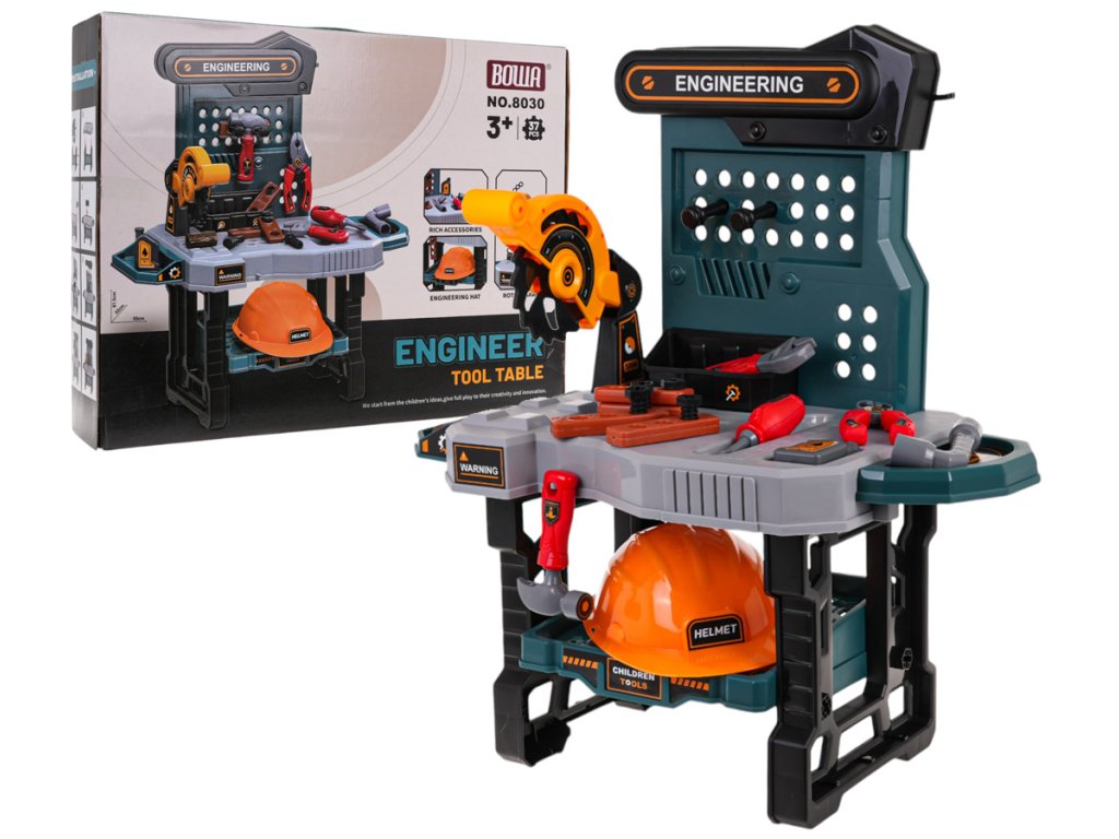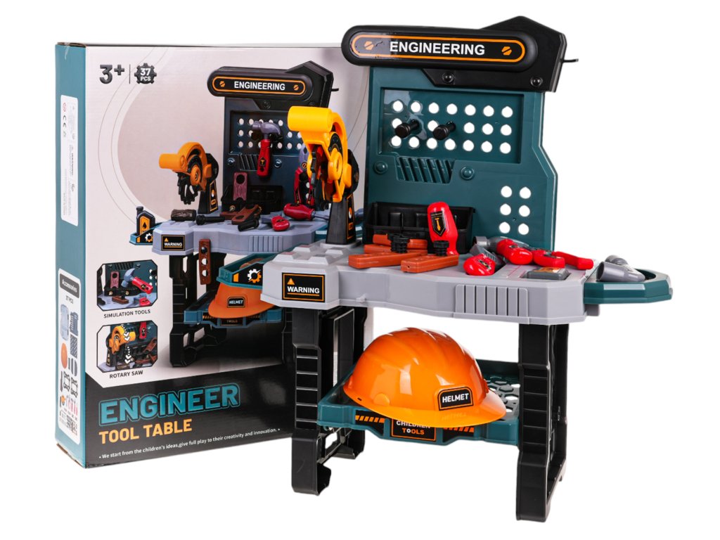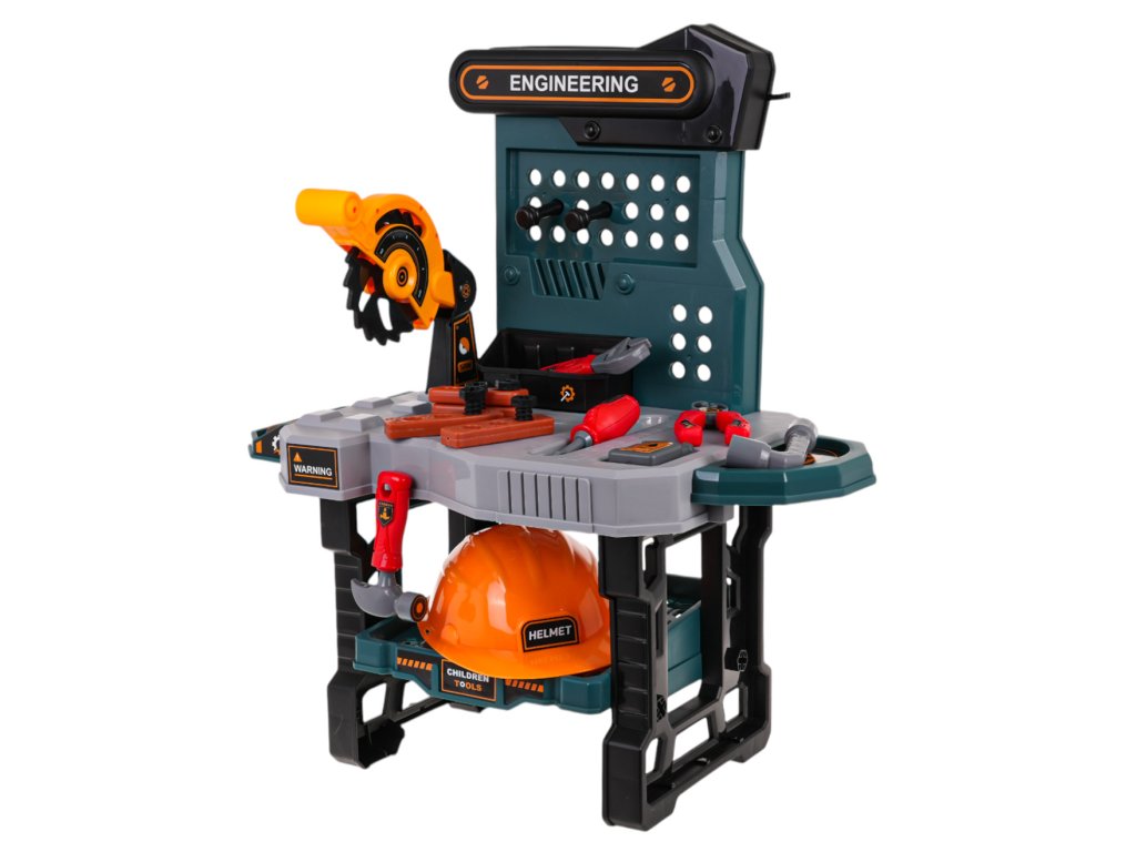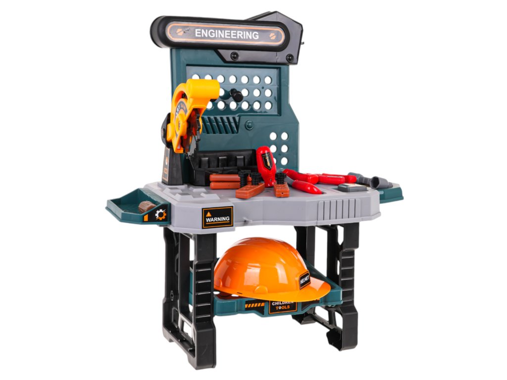 A richly equipped workshop with a helmet, circular saw and accessories is a proposal for children from 3 years of age. The set consists of 37 elements that look like real tools. Individual tools can be freely arranged on a practical workbench.
