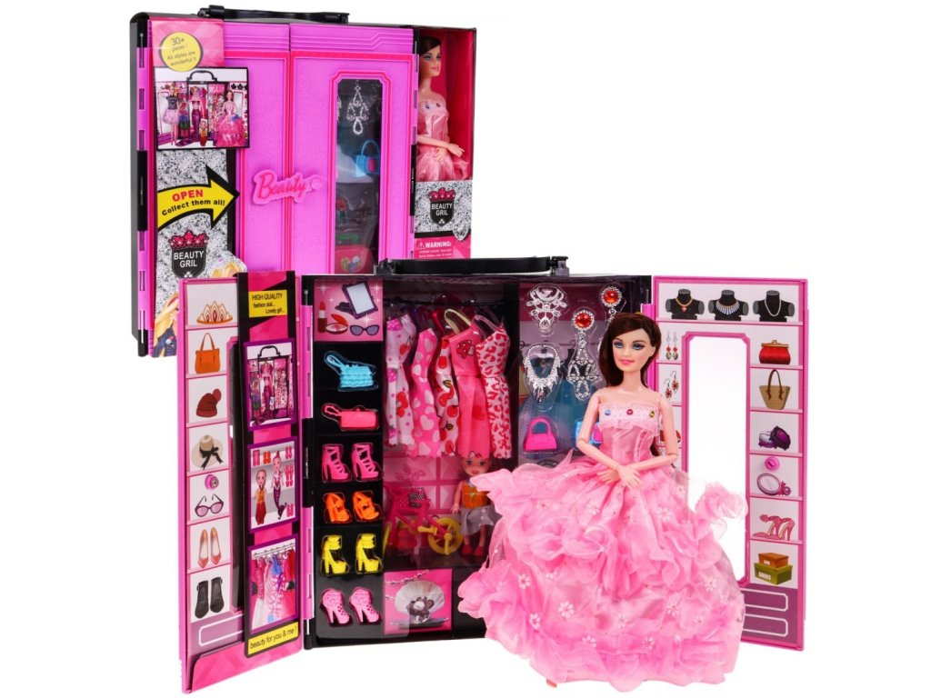 | Amazing, large, colorful wardrobe + doll set is the dream of every young lady. The set consists of 30 elements. The cabinet has a carrying handle so that your child can take it anywhere. Playing with this set will teach a child to keep order in his room and to manage space in the wardrobe well. The toy is intended for children from 3 years of age and has a CE certificate. |