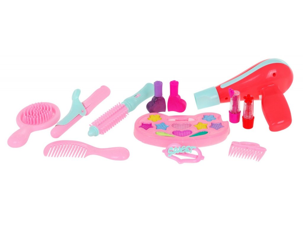 - a dressing table with the mirror - stool - 10 x eye shadows - eyeshadow brush - dryer - comb - brush - strainghtener - curling iron - 2 x clip - 2 x lipstick - 2 x varnish | |