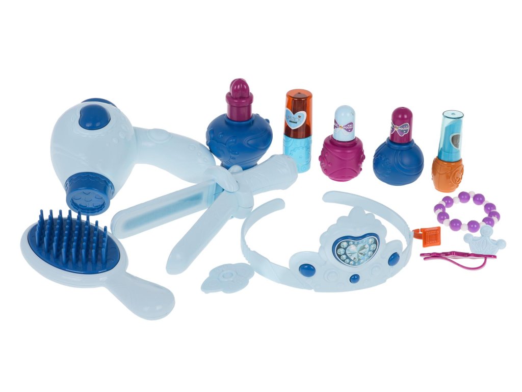 - vanity table, - stool, - hair dryer, - hairbrush, - straightener, - 2x nail polish, -2 x lipstick, - bracelet, - 2x ring, - crown, - perfume, - 2 x hair clip, - decorative stickers. |