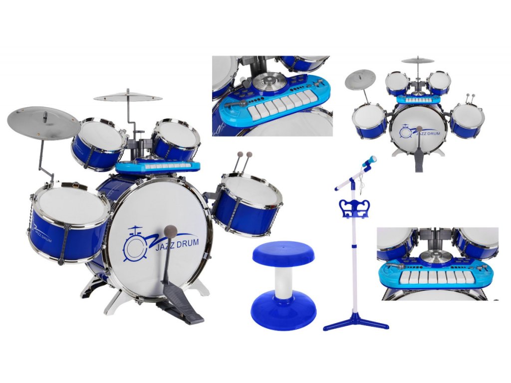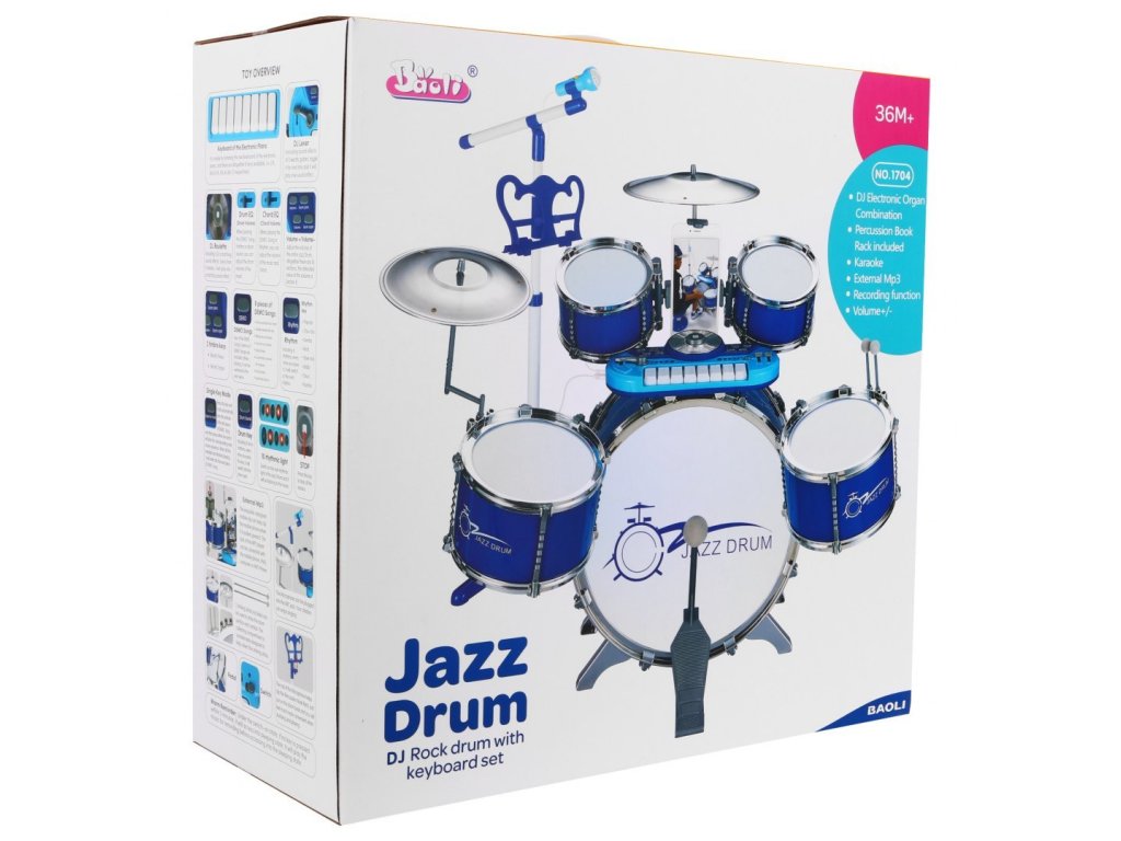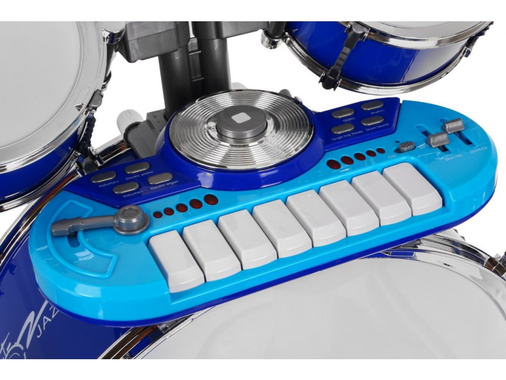 | The set works on the child in many developmental areas. It creates a musical hearing in your child, teaches you to learn sounds, teaches you a sense of rhythm, improves the sense of rhythm, trains memory and develops hand-eye coordination. The keyboard has: - 8 keys, - 8 rhythms, - 8 demo foundations, - 2 keys with a choice of piano or organs - DJ lever, - DJ mixer - 10 lights flashing to the rhythm of music, - volume control, - automatic shutdown after 3 minutes. The drums make a very realistic voice, the drum drum is finished with a soft foam, thanks to which even strong hitting will not damage the drums. The set includes an MP3 cable, we can connect the phone, tablet, etc. to the keyboard The toy is powered by 4 x 1.5 V AA batteries (not included). The toy has been designed since the 36th month of life and has a CE certificate. The whole packaged in a colorful box, ideal for a gift. |