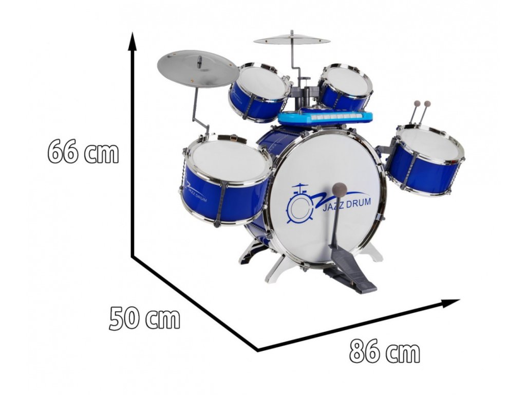 | Dimensions of the set (drums + keyboard): - height approx. 66 cm, - width around 86 cm, - a depth of about 50 cm. Dimensions of the microphone on the stand: - height approx. 108 cm, - width approx. 40 cm. Dimensions of drums: - diameter of a large drum, approx. 37 cm, - medium drum diameter approx. 19 cm, - diameter of a small drum about 15 cm. Dimensions of the stool: - height approx. 23 cm, - base diameter approx. 23.5 cm, - seat diameter approx. 20 cm. Size of the package: - height approx. 53 cm, - width approx. 53 cm, - a depth of about 24.5 cm. |