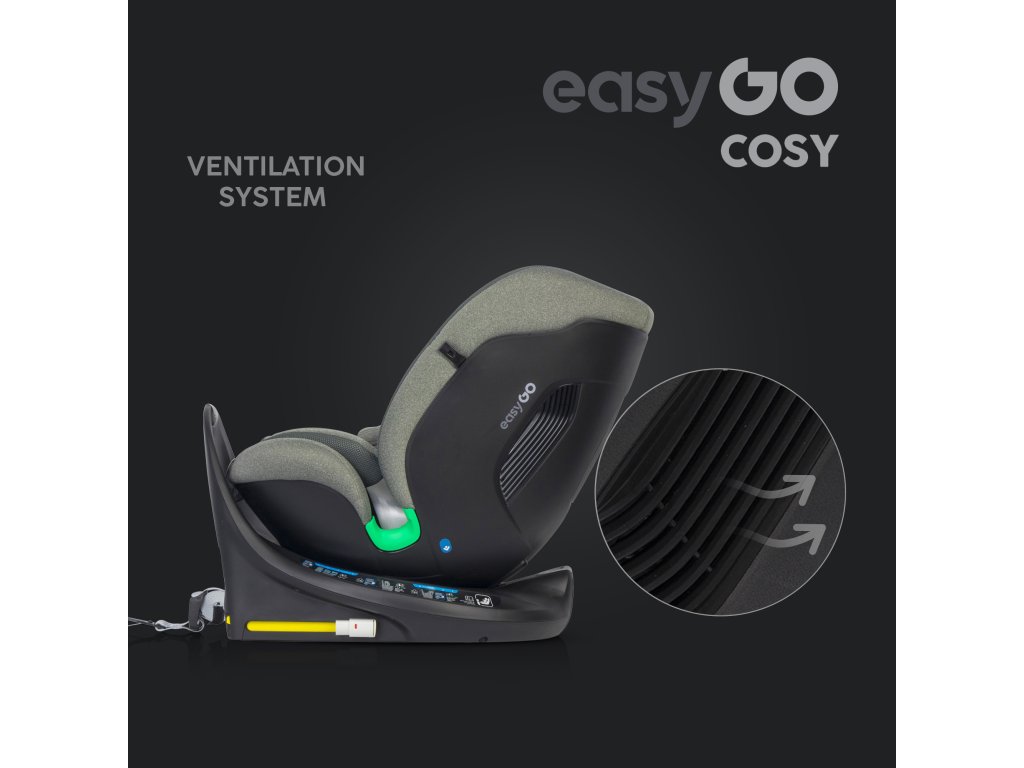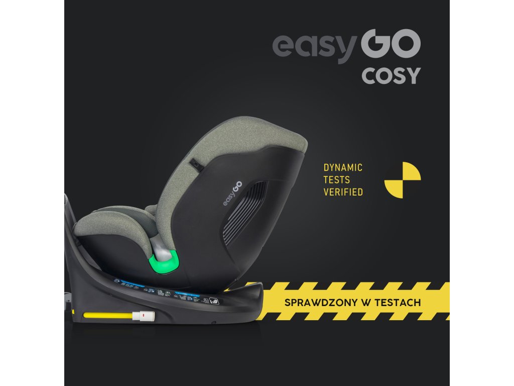 Důležité je, že horní pás je připevněn k rámu s vysokým protiotáčením, nikoli k opěradle sedadla, takže neovlivňuje funkci otáčení. Autosedačka EasyGo COSY spojuje bezpečnost, pohodlí a vynikající styl. Jedná se o další produkt z nejnovější rodiny homologovaných autosedaček ECE R129 I-SIZE nově přejmenovaného modelu EasyGo, který v roce 2024 prošel vizuální proměnou.