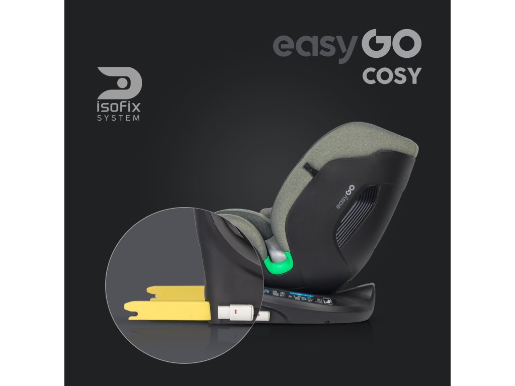 Kromě toho musí být všechna sedadla ECE 129 certifikovaná I-SIZE instalována pomocí systému ISOFIX, který výrazně snižuje chyby při instalaci. Autosedačka EasyGo COSY může být otočena dozadu pro děti až do výšky 105 cm (RWF až do hmotnosti přibližně 18 kg). Testy ukazují, že je to nejbezpečnější možná metoda instalace autosedačky.