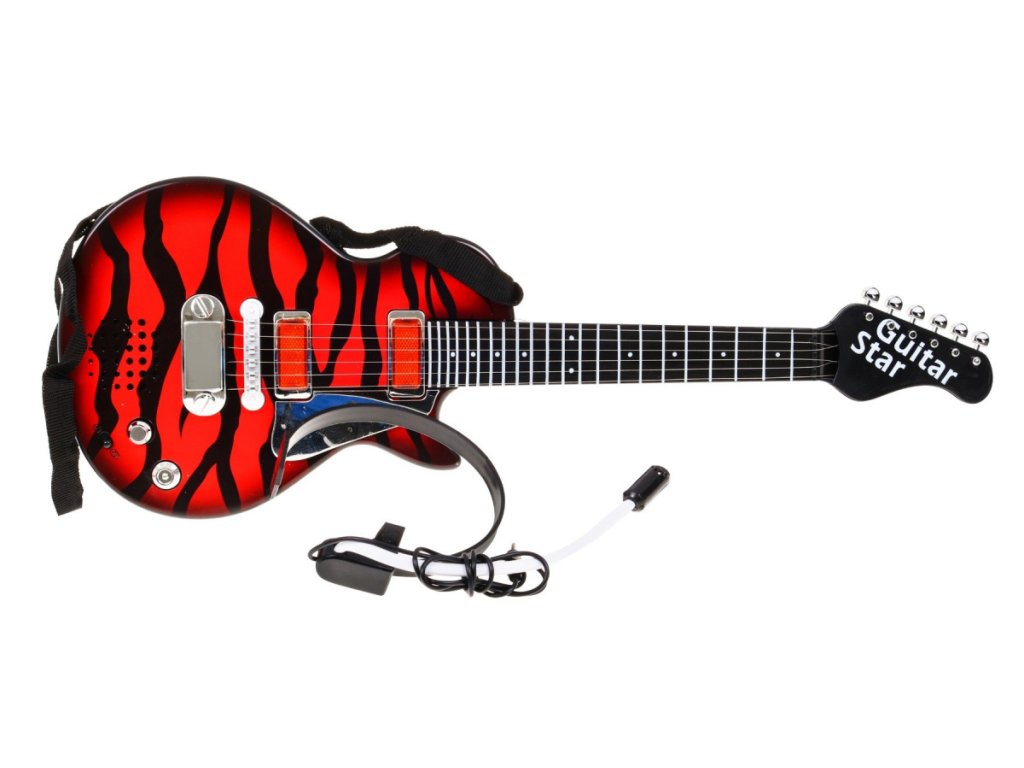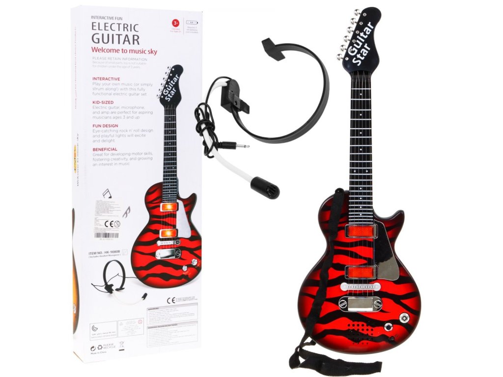 | A unique electric guitar for the future guitarist or guitarist. Thanks to its small dimensions, it fits perfectly into a three-year-old. The presence of music in the child's development has a definitely positive impact. Talent revealed in such an early period has a chance to develop significantly in the future, so you can not miss this moment. The guitar is equipped with 6 metal strings and a strap, it has 2 modes. The first mode gives the ability to play ready rock music background. Mode 2 is for playing (the strings make a sound when touched). The toy has a headset with a microphone attached to the guitar. The toy is intended for children from 3 years of age and has a CE certificate. The toy is powered by 3 x AA batteries (not included). |