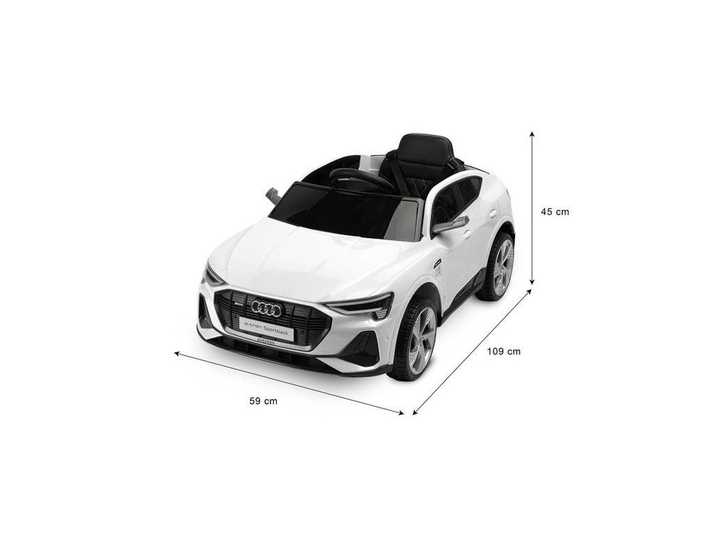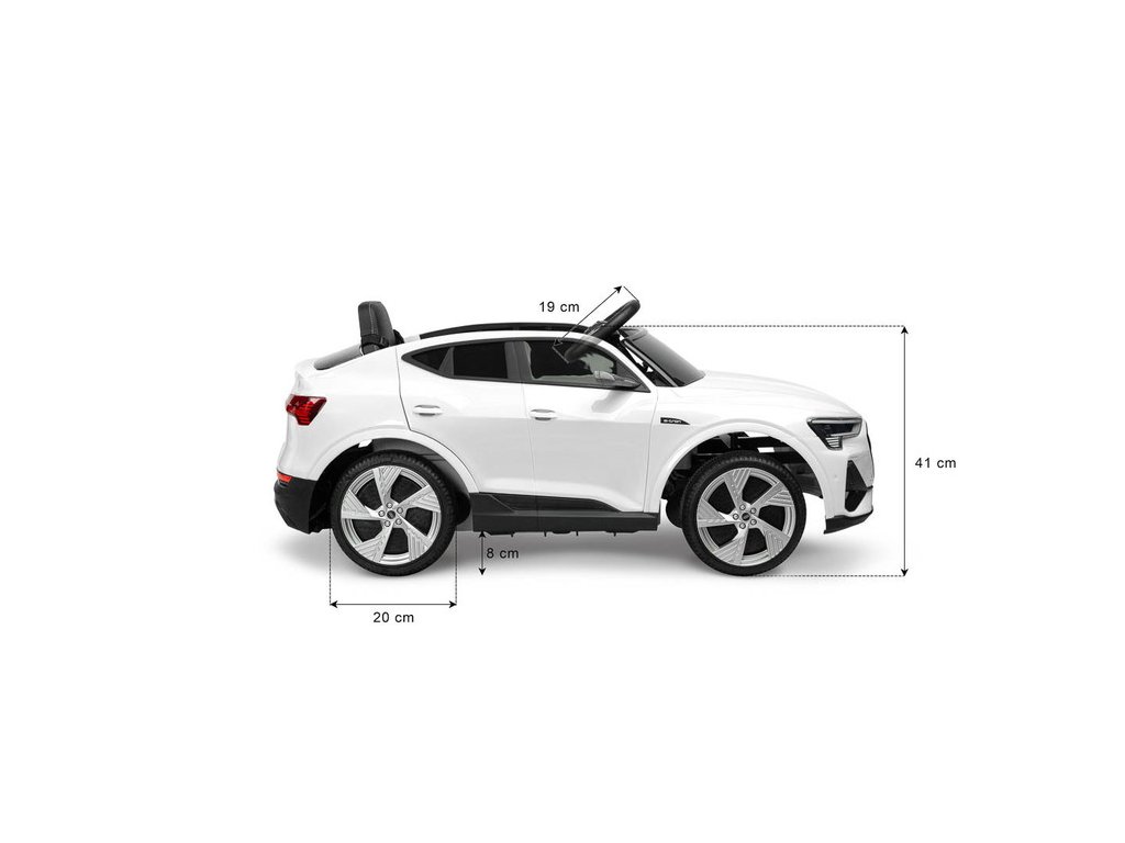 Audi E-tron Sportback je licencovaný vůz Toyz s akumulátorovým pohonem, který kombinuje elegantní design s dynamikou elektrického pohonu. Model se vyznačuje charakteristickou linií karoserie Audi, moderními úzkými zrcátky a kombinovaným světelným paprskem zadních světel. Silnou stránkou modelu E-tron Sportback je pohon všech kol s motory o výkonu 45 W a baterie o kapacitě 7 Ah. Pohodlí a bezpečnost hry zajišťují: zadní tlumiče, kola z vysoce kvalitní EVA pěny, sedadlo z ekokůže, 3-bodové pásy, pomalý start, dva rychlostní režimy a automatická brzda. Bateriový box má také vybavení pro rodiče: dálkové ovládání a výsuvná kolečka pro snadné přenášení.