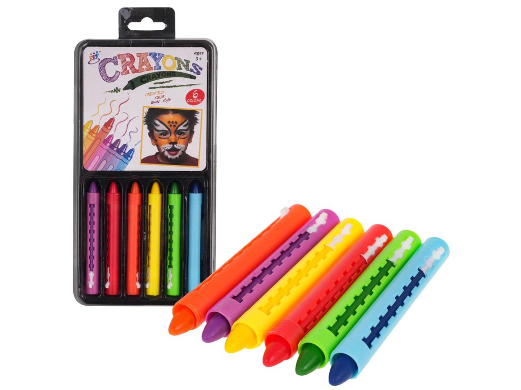 Face painting crayons 6 colors for children over 3 years of age. The crayons are completely safe for children, made of non-toxic materials, do not cause allergies. After the fun is over, the crayons can be easily washed off the face with just soap and water.