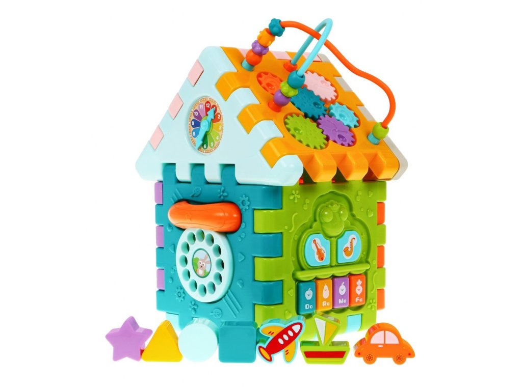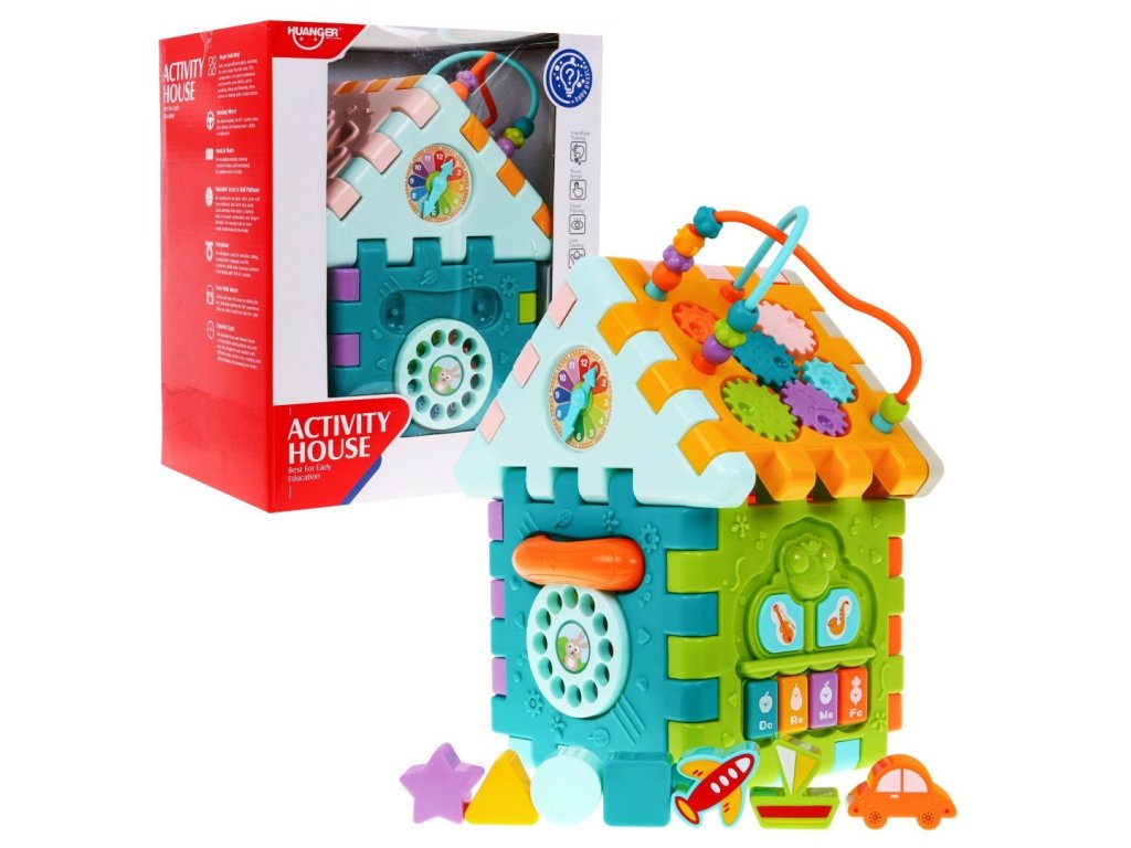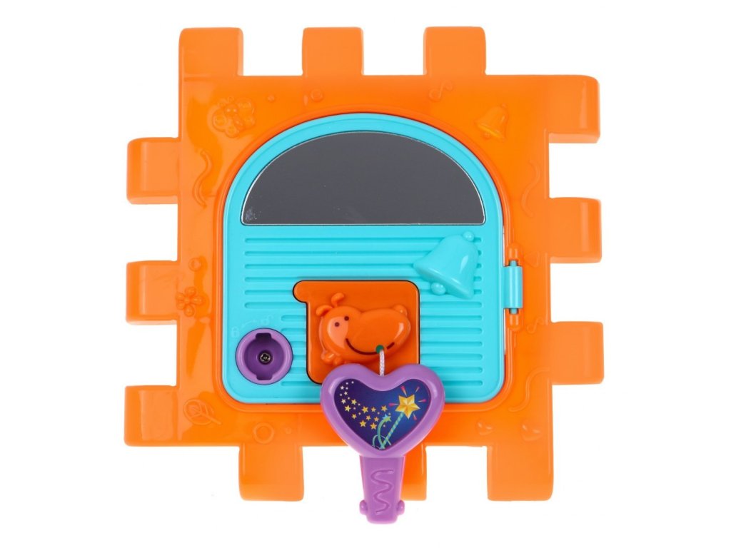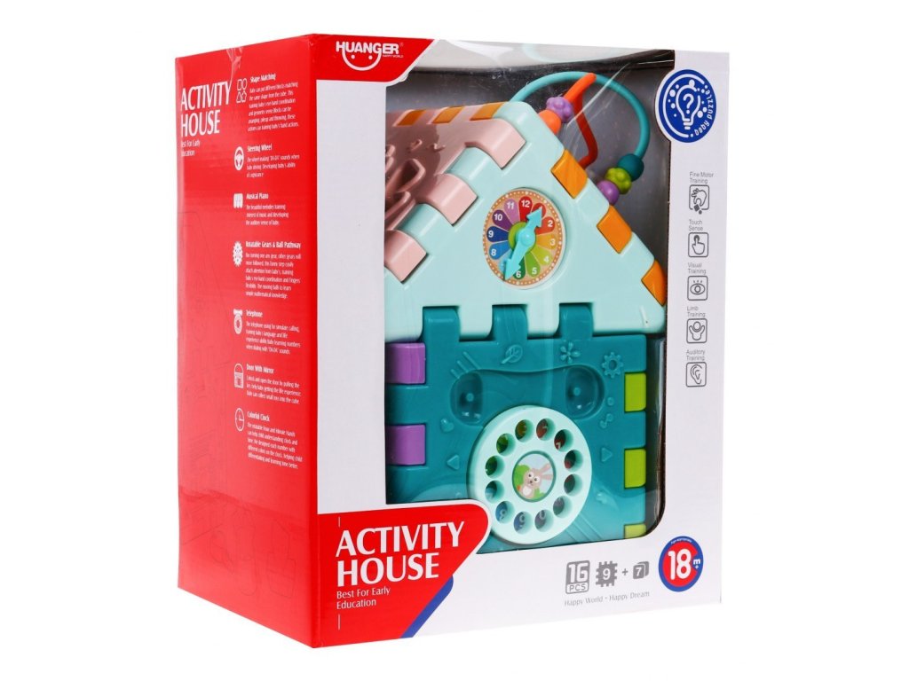 | Amazing, colorful educational cube, puzzle is designed for children from 18 months. The toy is powered by 3 x 1.5 AAA batteries (not included). The blocks can be combined with each other in many different ways, they can be arranged in a flat mat. Each wall has a different color and functionality: 1. A bright green wall with a piano (sounds and lights - hearing and sight). 2. Dark green wall with a telephone (hand and finger training function). 3. Purple wall with the steering wheel (turning the steering wheel and accompanying noises - hearing and training your hands). 4. Orange wall with lockable doors (develops cause and effect thinking). 5. Yellow wall with spinning modes and sliding beads on the track (hand and finger training function). 6. Celadon and pink wall with shape matching (learning colors and shapes). 7. A gray wall with a round mirror (sight), 8. Wall with a watch (training of hands and fingers, sight)The toy has a positive effect on the development of cognitive abilities and cause and effect thinking in a baby. The child will learn new shapes, colors and sounds. Training for his hands will be pressing, pushing and twisting. The toy has sound and light elements that perfectly stimulate the child's eyesight and hearing. |
