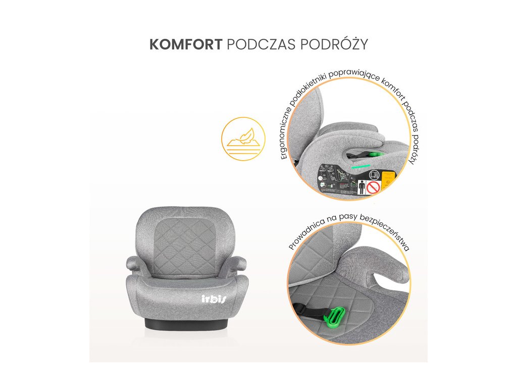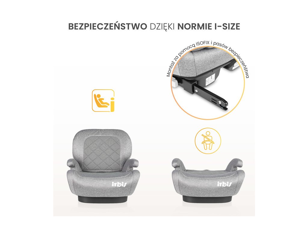Model Irbis i-Size spełnia aktualne europejskie wymogi bezpieczeństwa. Dodatkowym atutem jest system ISOFIX, umożliwiający stabilne przymocowanie podstawki do konstrukcji pojazdu, dzięki czemu booster nie przesuwa się ani nie przechyla, poprawiając nie tylko bezpieczeństwo, ale i komfort dziecka.