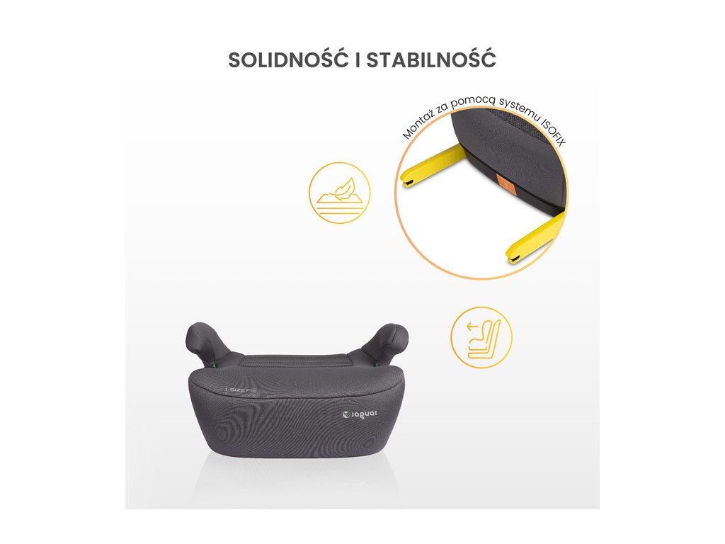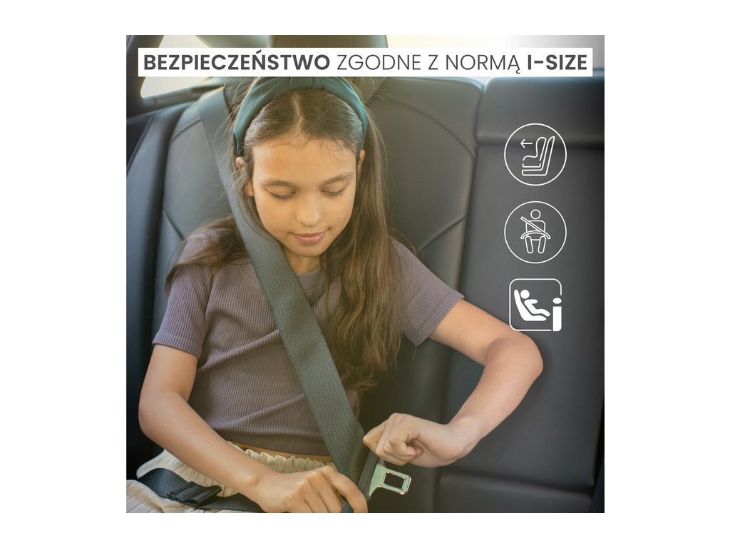 Zintegrowany system ISOFIX umożliwia szybki i bezproblemowy montaż fotelika w samochodzie, zapewniając jego stabilne i pewne zamocowanie. Booster pozostaje na swoim miejscu nawet jeśli dziecko w nim nie siedzi, co zapobiega jego przesuwaniu się podczas jazdy.