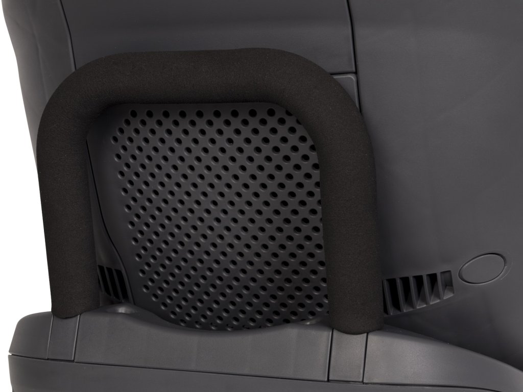 Jeho velkou výhodou je schopnost přepravovat dítě zády až do výšky 105 cm, tedy až do hmotnosti přibližně 18 kg. Studie ukazují, že přeprava dítěte vzadu je až 5krát bezpečnější než vpředu. Při používání sedadla v tomto prostředí je nutné použít podpůrnou nohu.